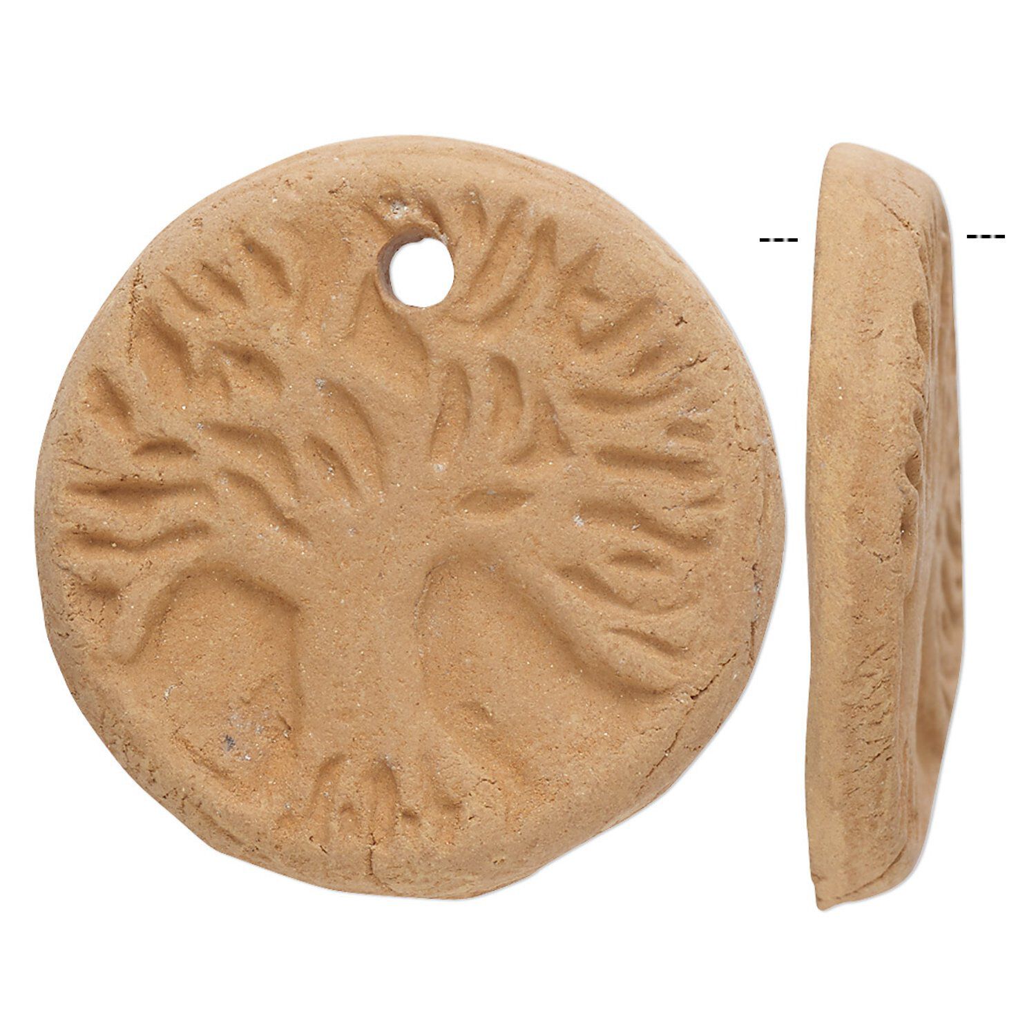 Focal, terra cotta, 32-34mm single-sided flat round with tree of life design. Sold per pkg of 2.