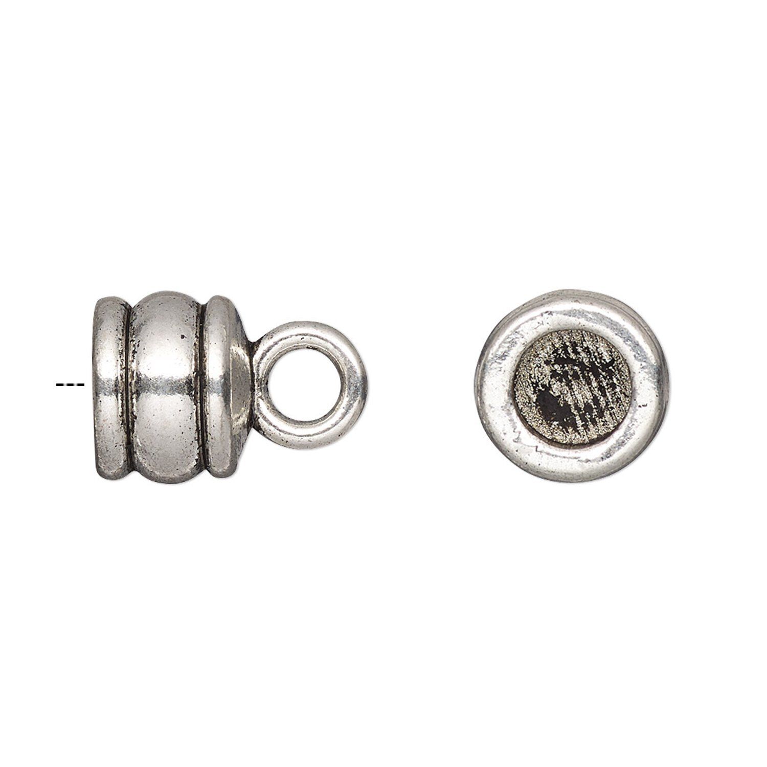 Cord end, glue-in, antique silver-finished "pewter" (zinc-based alloy), 11x9mm ribbed barrel, 6.5mm inside diameter. Sold per pkg of 4.