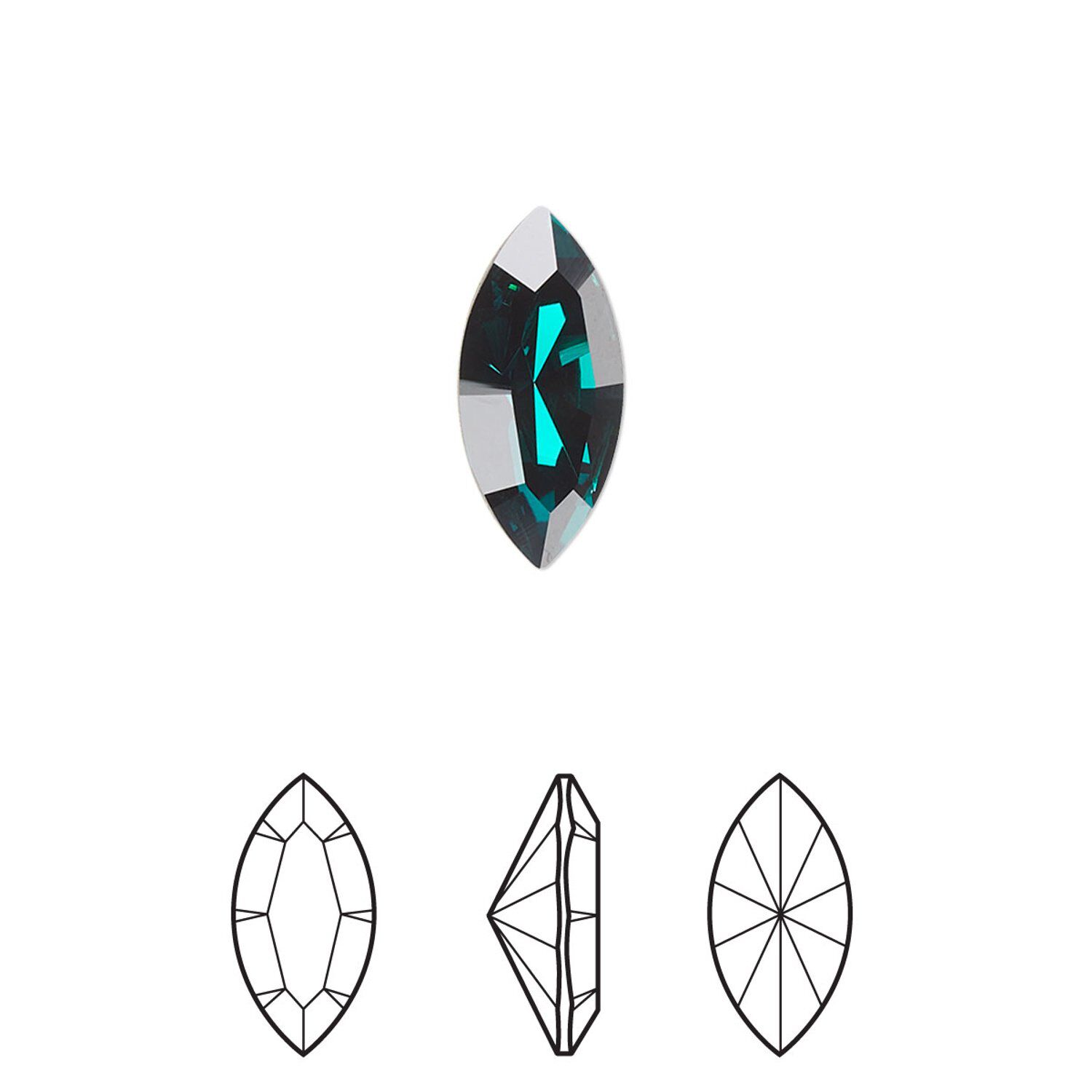 Fancy stone 2pk emerald foil back, Crystal Passions® 15x7mm navette 4228