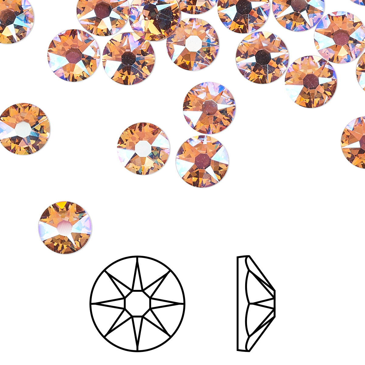 Flat back 144pk light rose shimmer foil back, Crystal Passions® 6.32-6.5mm rose round SS30 2088