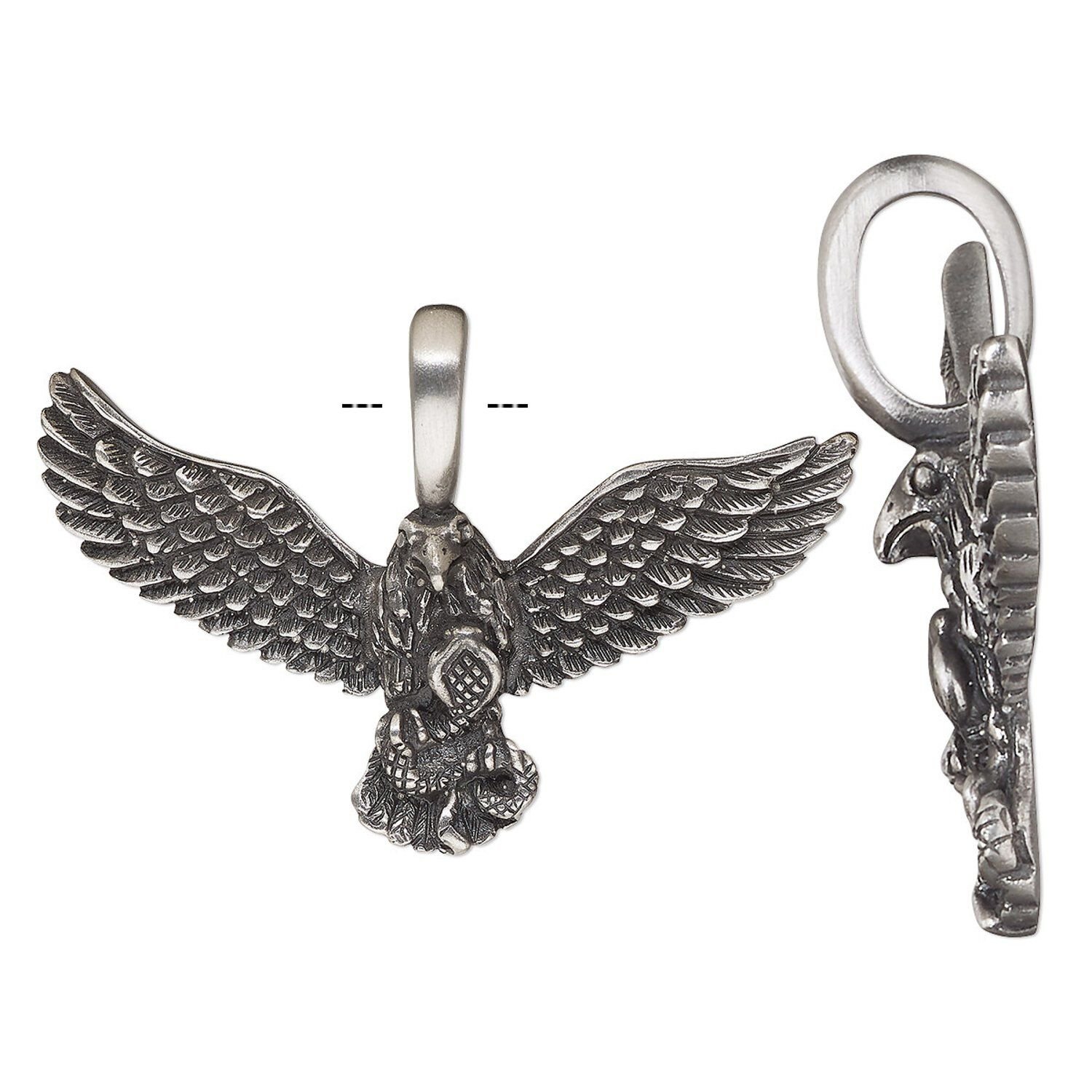 Pendant, antiqued pewter (tin-based alloy), 58x39mm single-sided eagle with snake. Sold individually.
