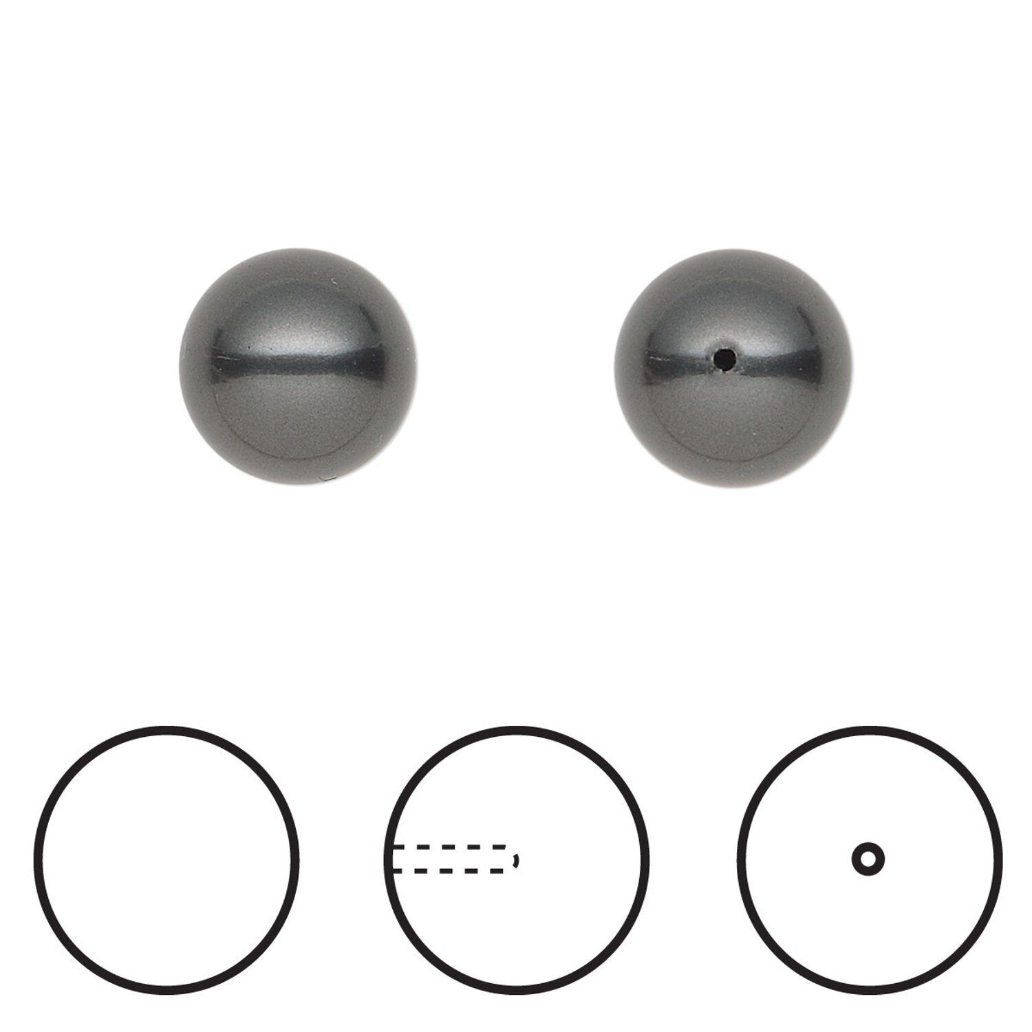 Pearl 1pkg4 black, Crystal Passions® 10mm half-drilled round 5818