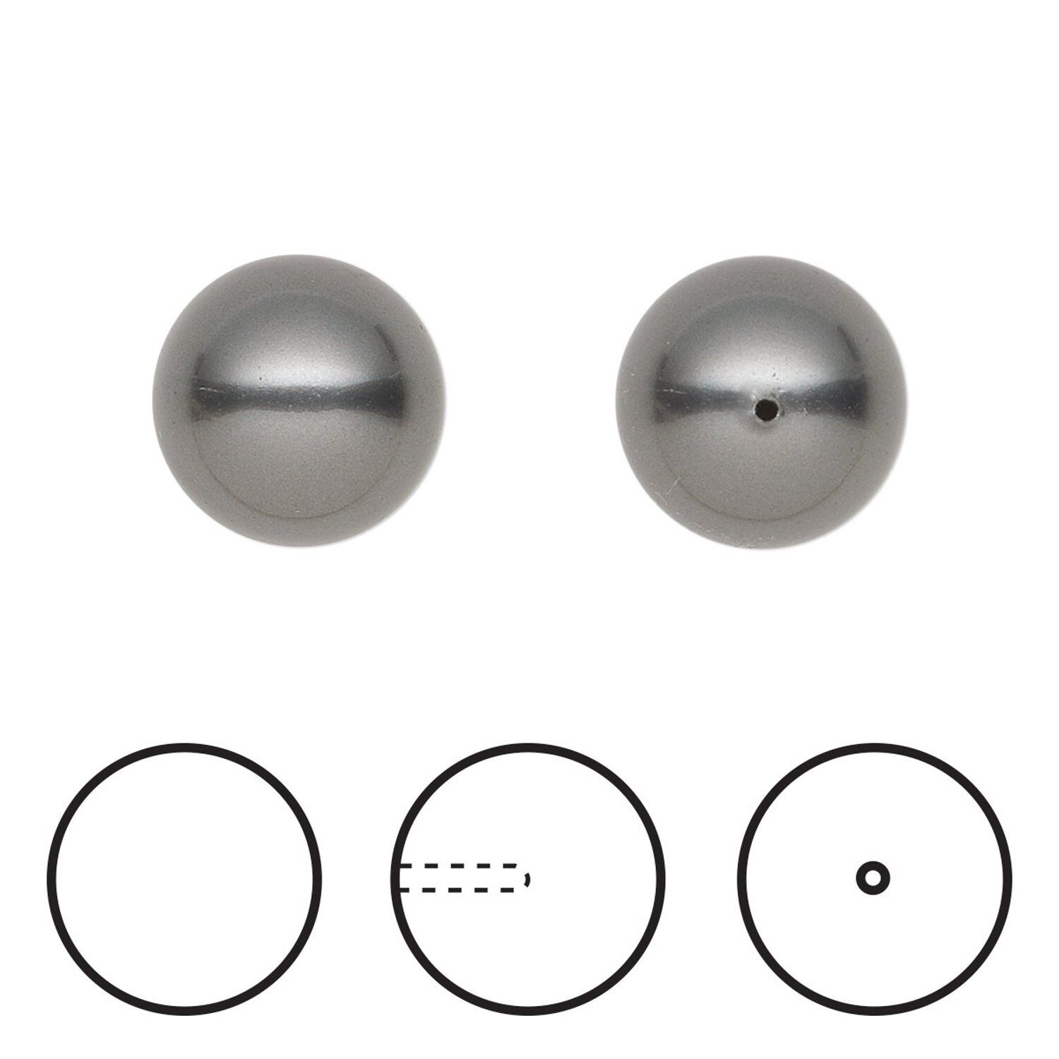 Pearl 1pkg4 dark grey, Crystal Passions® 12mm half-drilled round 5818