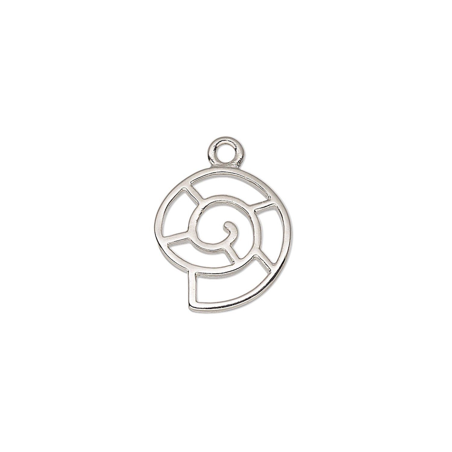 Charm, imitation rhodium-plated "pewter" (zinc-based alloy), 14.5x13mm two-sided open nautilus shell. Sold individually.