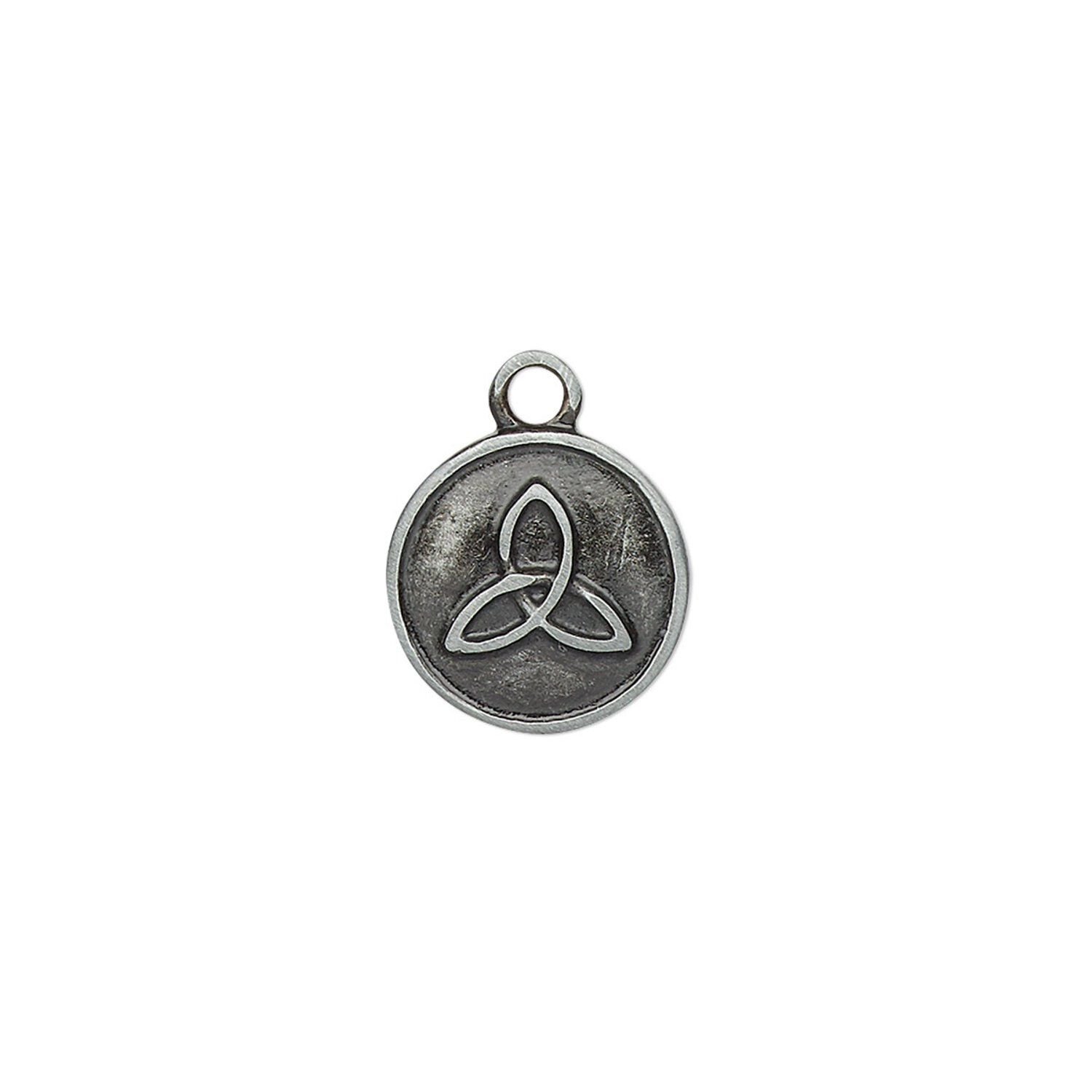 Drop, enamel and "pewter" (zinc-based alloy), black, 12mm double-sided round with Celtic triangle knot. Sold individually.