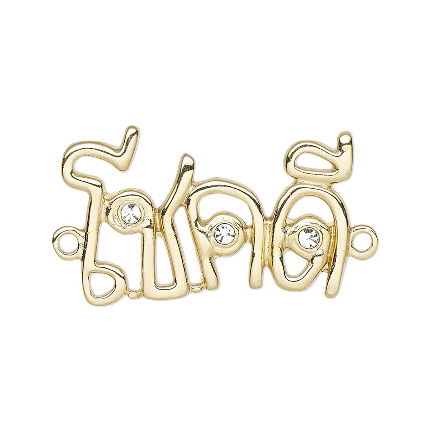 Link, cubic zirconia and gold-finished "pewter" (zinc-based alloy), clear, 30x18mm single-sided "Good Luck." Sold individually.