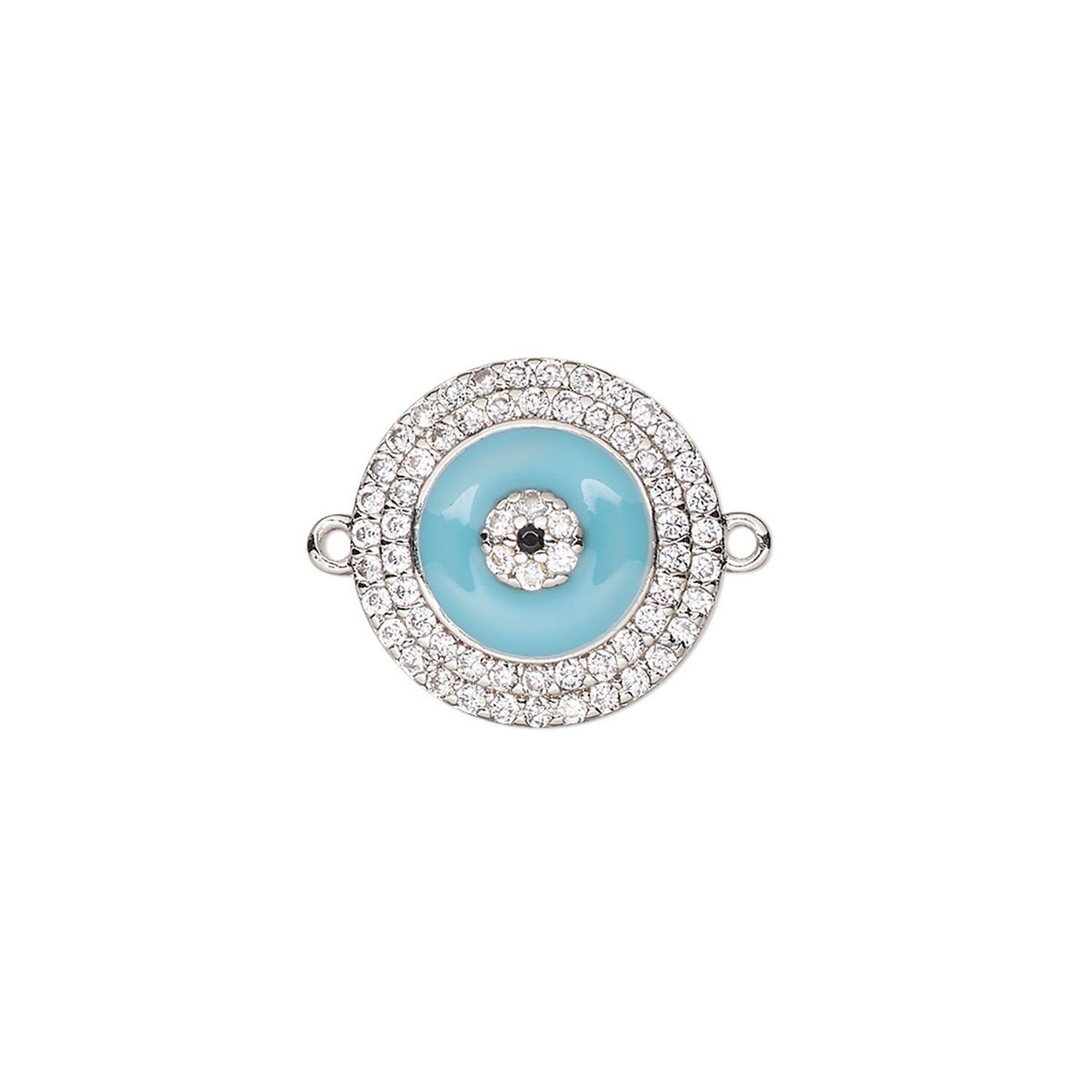 Detailed "all-seeing eye" link is ideal for use with Gossamer™ brand and other petite chains in minimalist or "barely there" designs. Add jumprings to connect to other links or chain. Eye design is created using colorful enamel with cubic zirconia accents.
