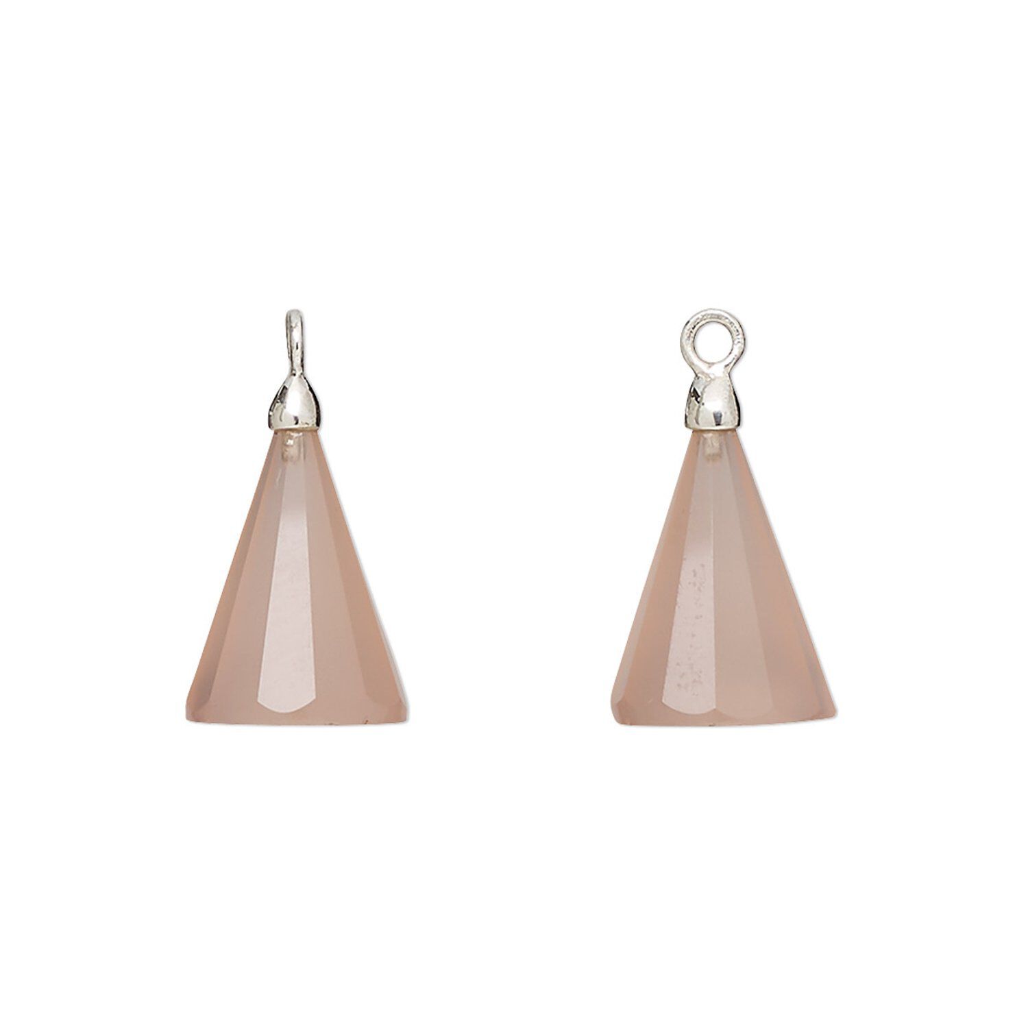 Drop, silver-plated pink chalcedony (dyed) and electroplated sterling silver, 14x9mm-15x10mm hand-cut 3D faceted cone, Mohs hardness 6-1/2 to 7. Sold individually.