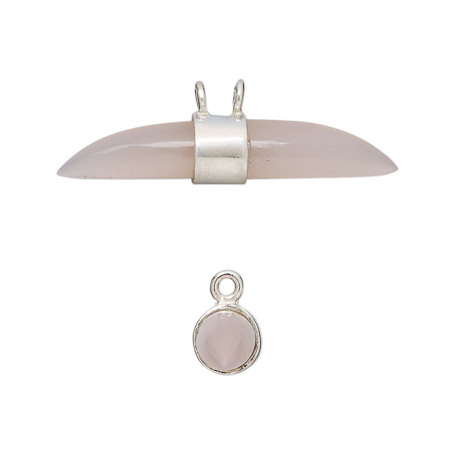 Focal, pink chalcedony (dyed) and sterling silver, 33x6mm-36x7mm hand-cut double point with 2 loops, Mohs hardness 6-1/2 to 7. Sold individually.