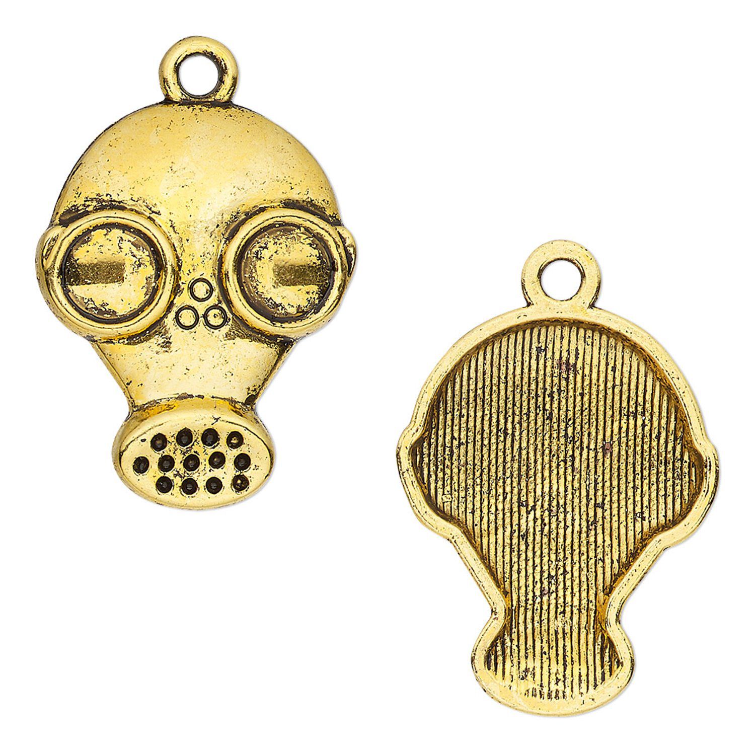 Lightweight "pewter" charms have an antique gold finish that heightens details. Gas mask design is perfect for masculine jewelry lines.