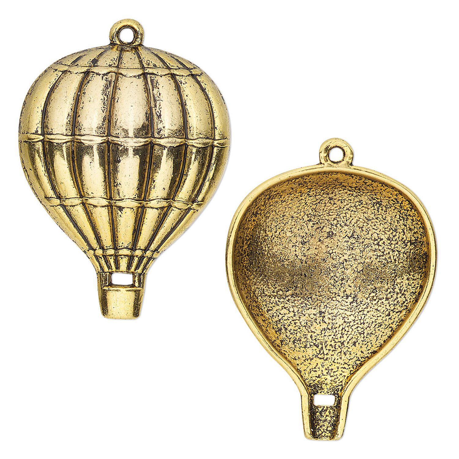 Lightweight "pewter" charms have an antique gold finish that heightens details. Single-sided hot air balloon is perfect for whimsical jewelry lines.