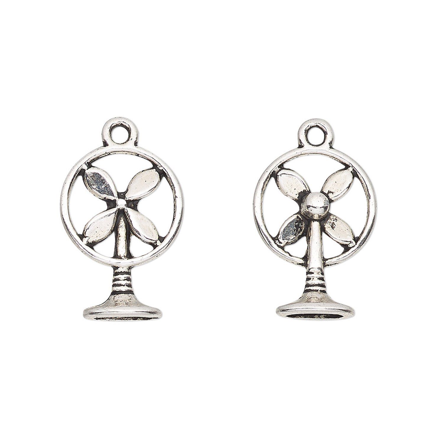 Lightweight "pewter" charms have an antique silver finish that heightens details. Unique design features a three-dimensional fan, perfect for steampunk or other whimsical jewelry lines.