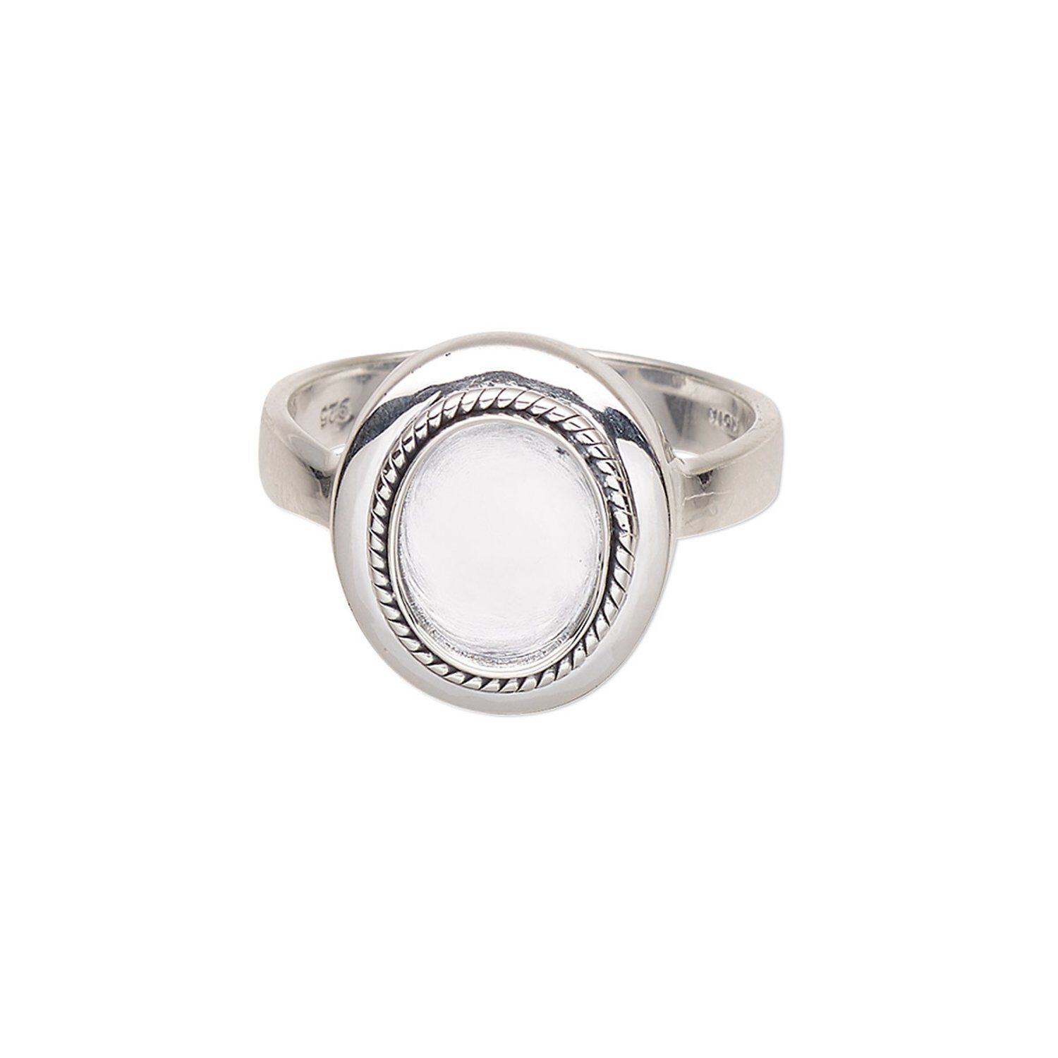 Ring, antiqued sterling silver, 3-4mm wide with twisted wire rim and 10x8mm oval glue-in setting, size 9. Sold individually.