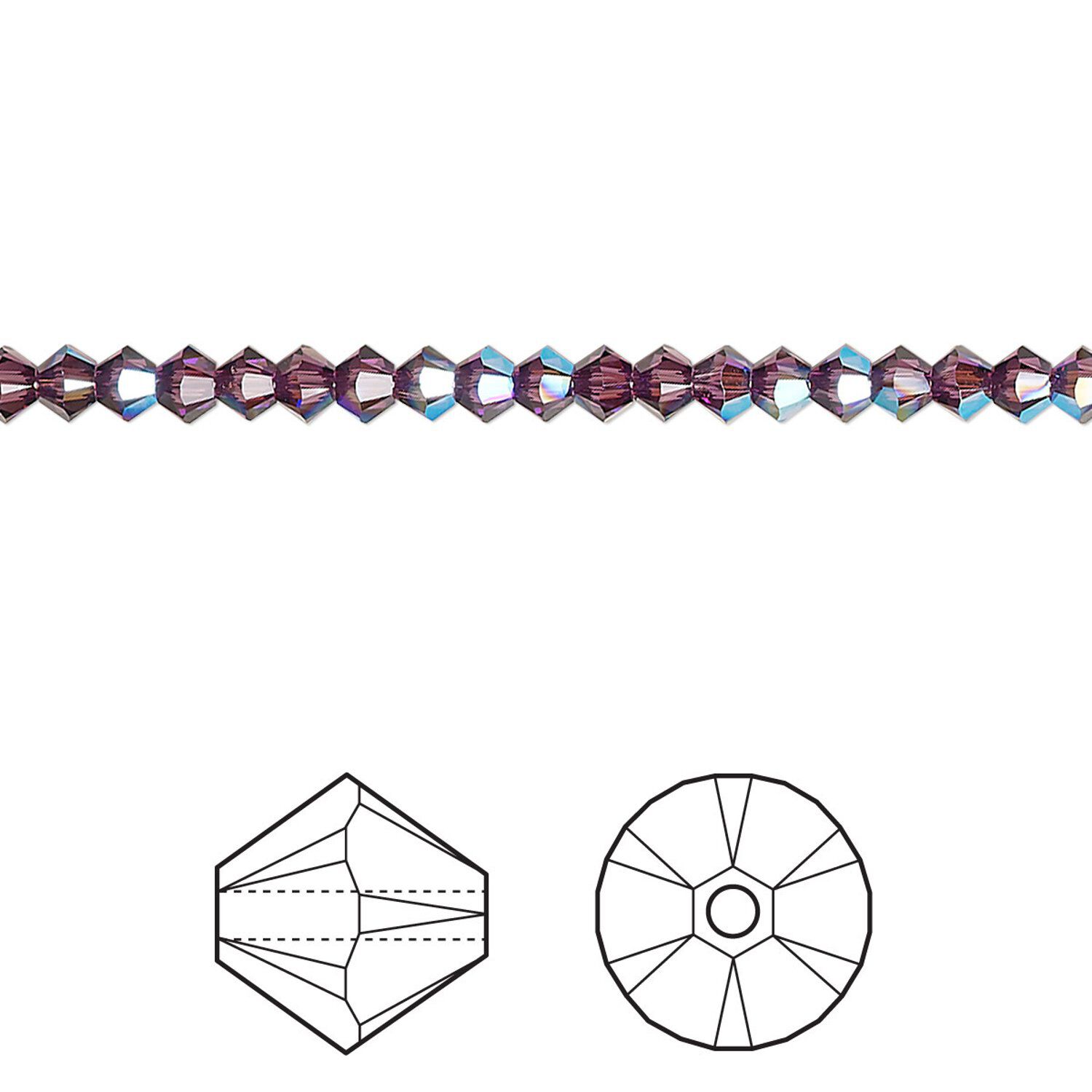 Bead 1440pk amethyst shimmer, Swarovski® 3mm XILION bicone 5328
