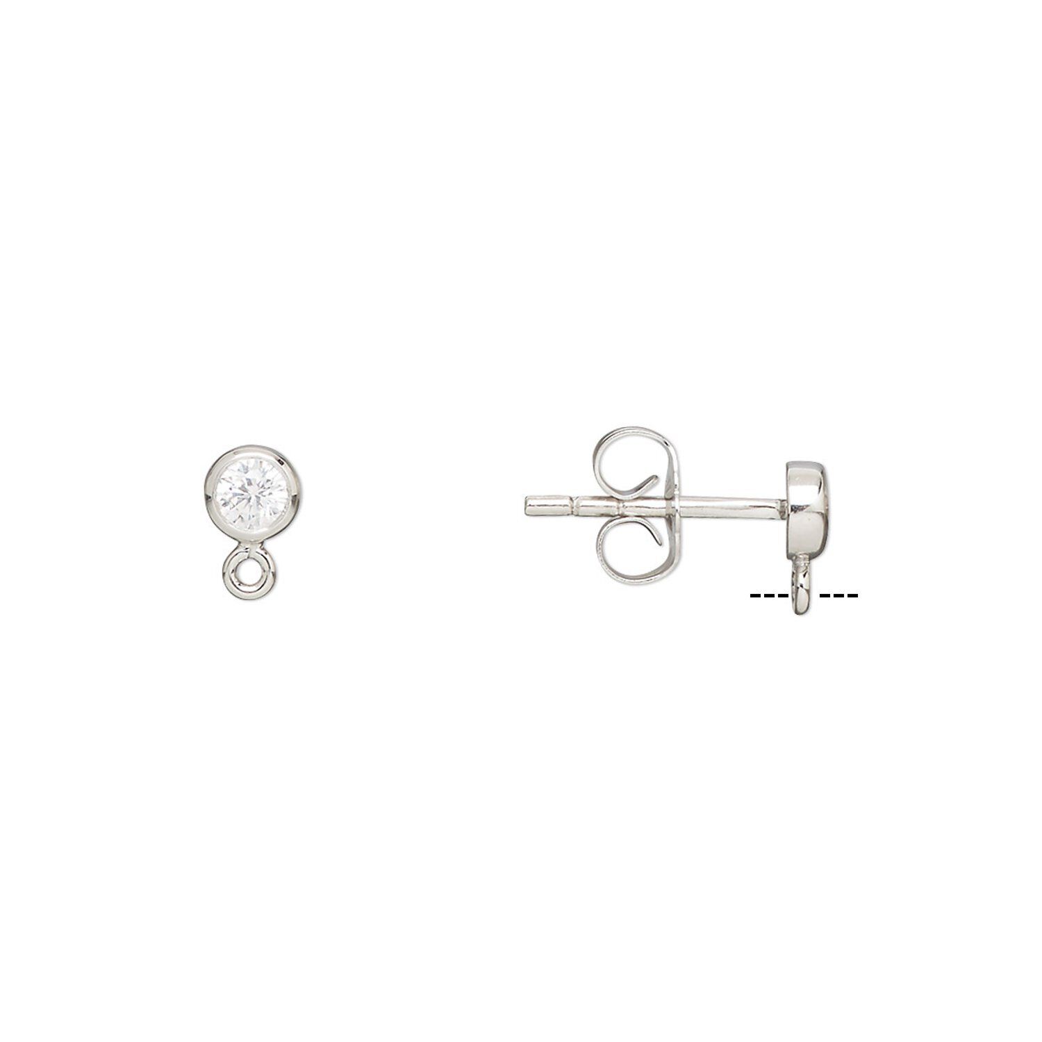 Create jewelry with these earstud findings featuring closed loops for adding dangles. Earstuds are embellished with glittering, micro cubic zirconia rhinestones for extra sparkle. The earring findings offer a high-end look with added tarnish resistance thanks to rhodium plating over sterling silver. Earnuts included.