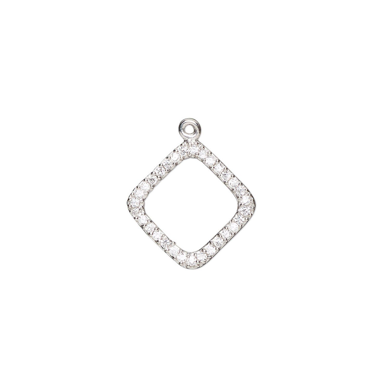 Single-sided open diamond drop is dainty enough for charm bracelets or "barely there" jewelry styles and is embellished with glittering cubic zirconia rhinestones for extra sparkle. Drop offers a high-end look with added tarnish resistance thanks to rhodium plating over sterling silver.