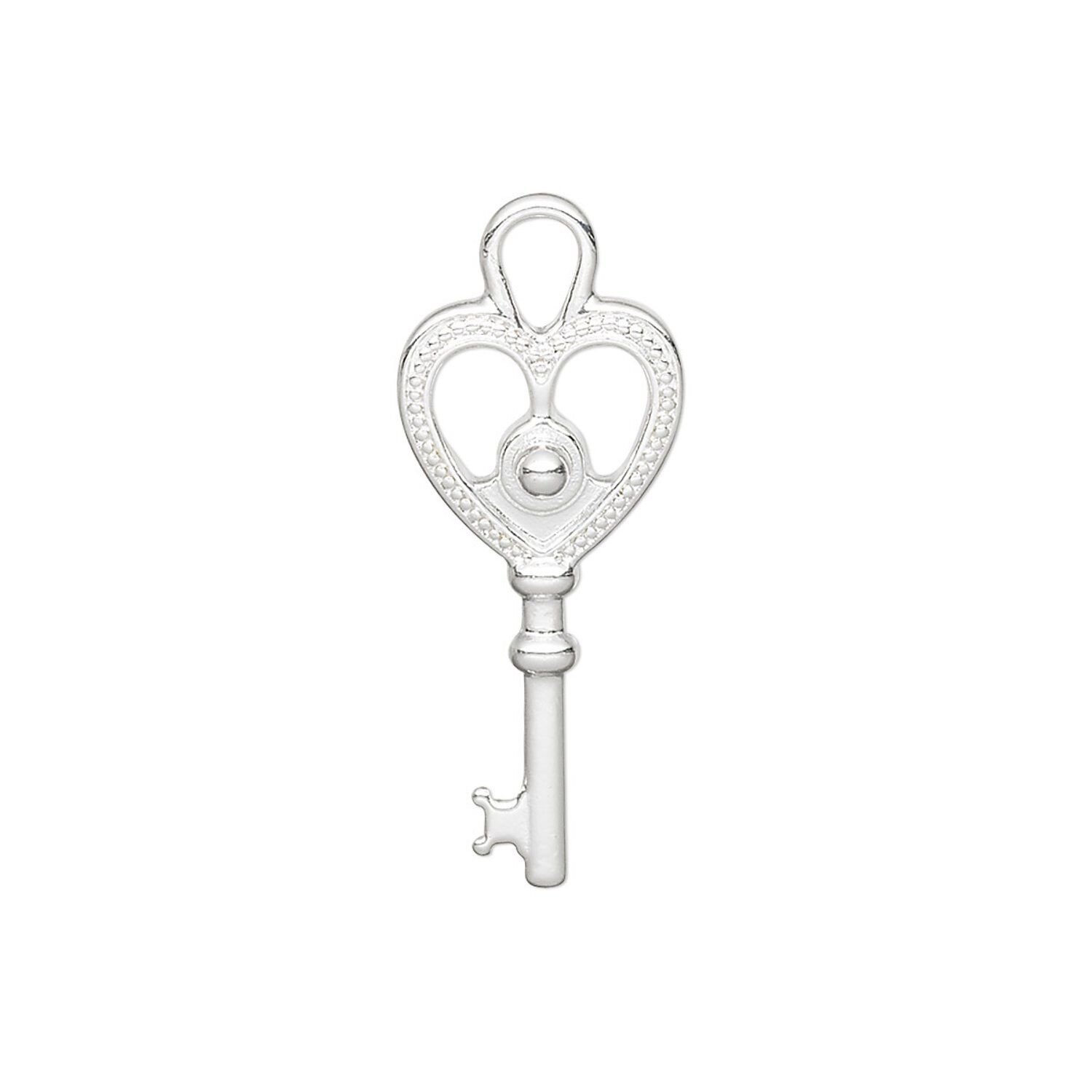 Stylish key charms in plated "pewter" (zinc-based alloy). Clever additions to charm bracelets and necklaces, unlocking the latest in fashion jewelry. The charms have double-sided designs.