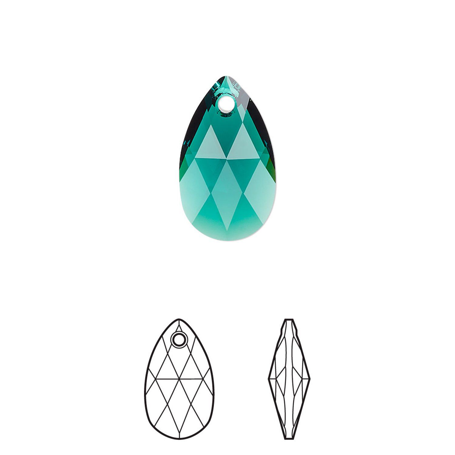 Drop 144pk emerald, Swarovski® 16x9mm pendant pear 6106