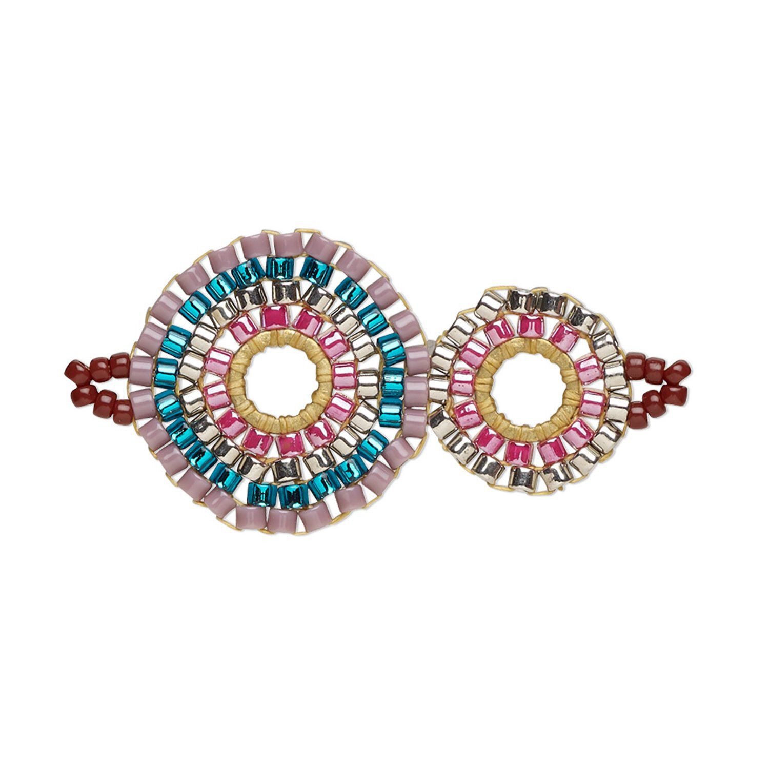 Double-sided double-circle link from Toho's Creative Touch collection is a unique, handmade seed bead component using top-quality Aiko beads featuring a consistent cylindrical shape and size. Because the link is pre-assembled, you'll save time adding this wonderfully smooth, silken finish component to your jewelry creations. Simply add chain, cord or ear wire for a high-end fashion look.