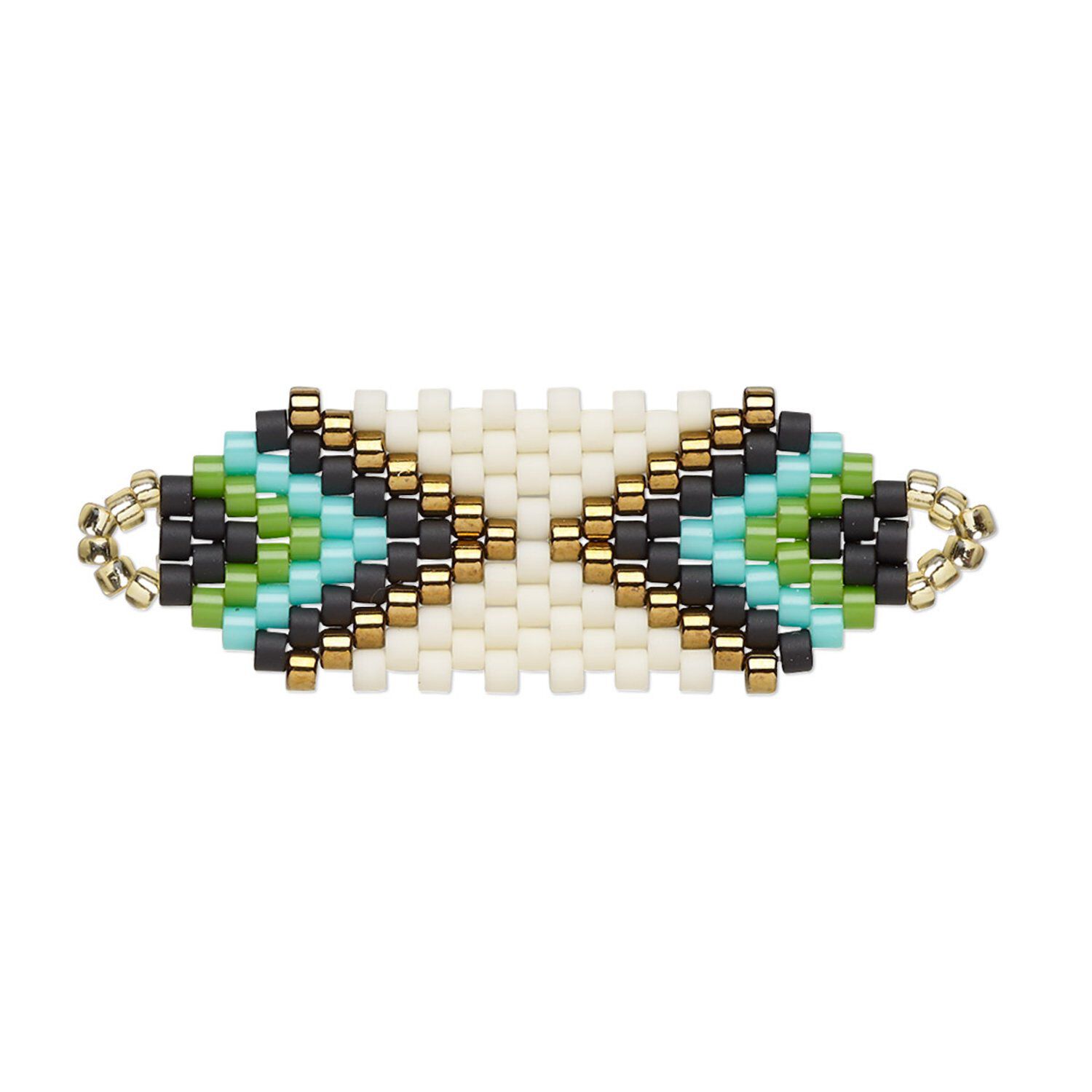 Double-sided oval focal from Toho's Creative Touch collection is a unique, handmade seed bead component using top-quality Aiko beads featuring a consistent cylindrical shape and size. Because the focal is pre-assembled, you'll save time adding this wonderfully smooth, silken finish component to your jewelry creations. Simply add chain, cord or ear wire for a high-end fashion look. Colors can include cream, bronze, green and more.
