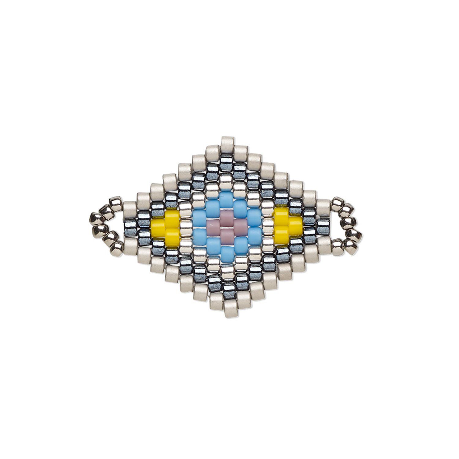 Double-sided diamond link from Toho's Creative Touch collection is a unique, handmade seed bead component using top-quality Aiko beads featuring a consistent cylindrical shape and size. Because the link is pre-assembled, you'll save time adding this wonderfully smooth, silken finish component to your jewelry creations. Simply add chain, cord or ear wire for a high-end fashion look.