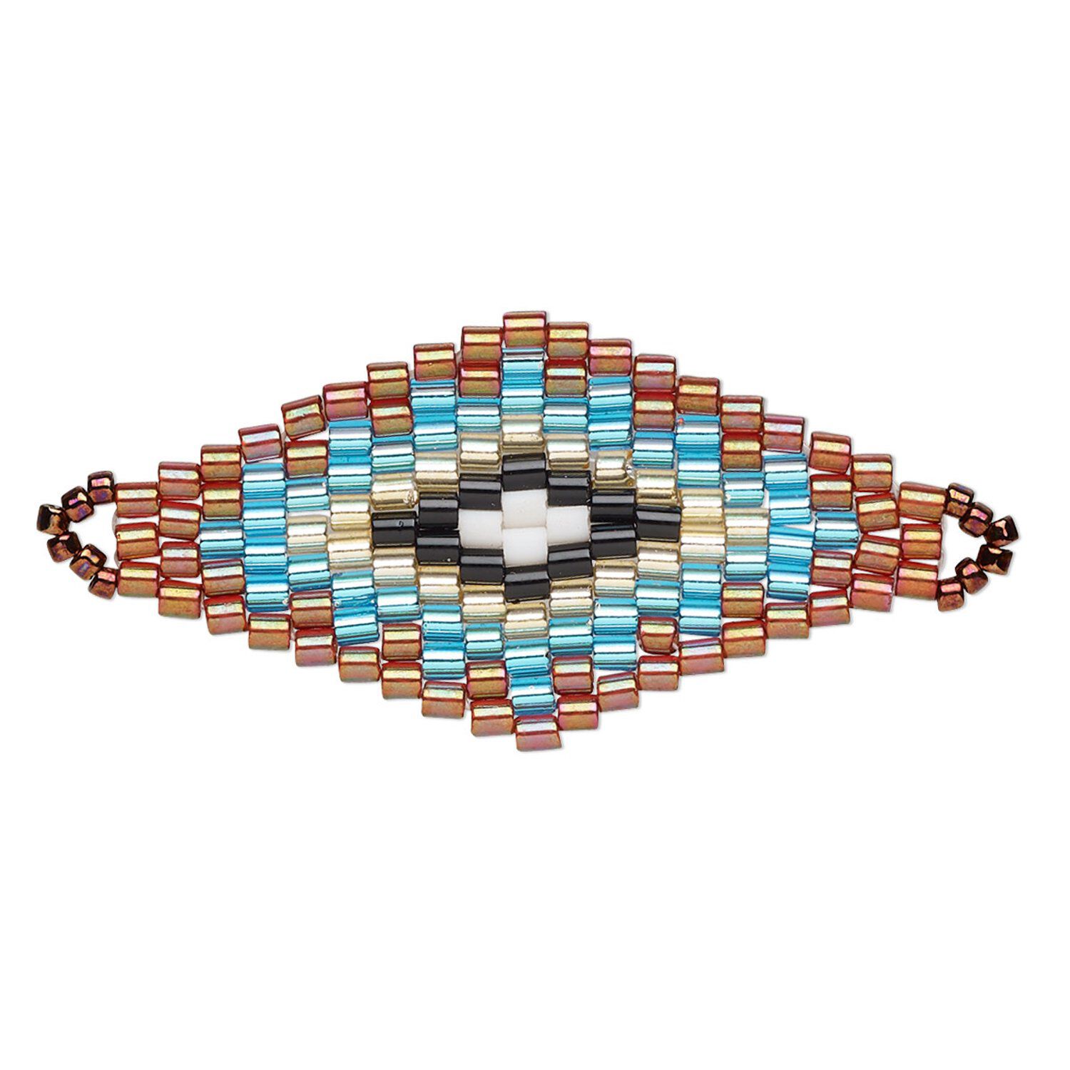 Double-sided diamond focal from Toho's Creative Touch collection is a unique, handmade seed bead component using top-quality Aiko beads featuring a consistent cylindrical shape and size. Because the focal is pre-assembled, you'll save time adding this wonderfully smooth, silken finish component to your jewelry creations. Simply add chain, cord or ear wire for a high-end fashion look.