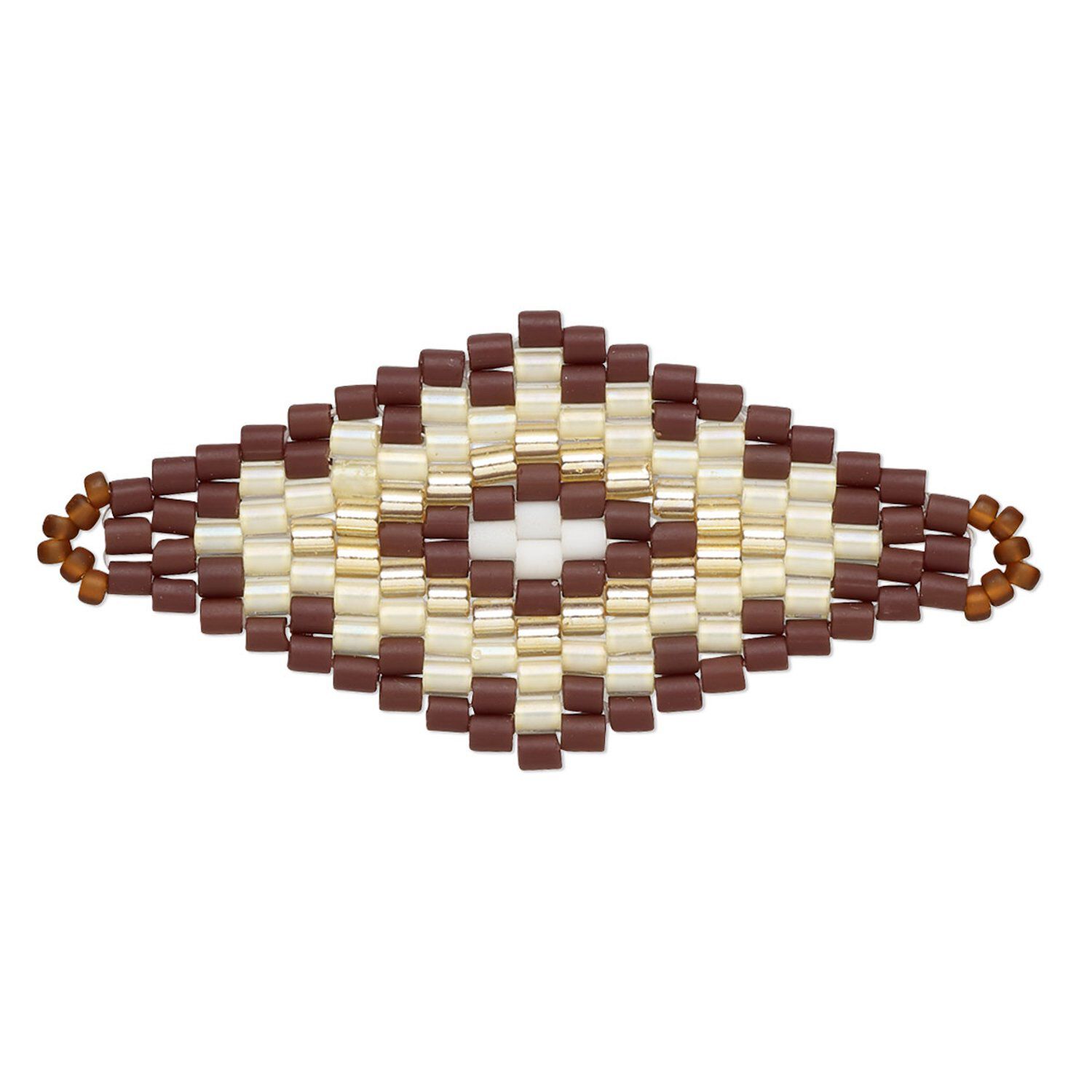 Double-sided diamond focal from Toho's Creative Touch collection is a unique, handmade seed bead component using top-quality Aiko beads featuring a consistent cylindrical shape and size. Because the focal is pre-assembled, you'll save time adding this wonderfully smooth, silken finish component to your jewelry creations. Simply add chain, cord or ear wire for a high-end fashion look.