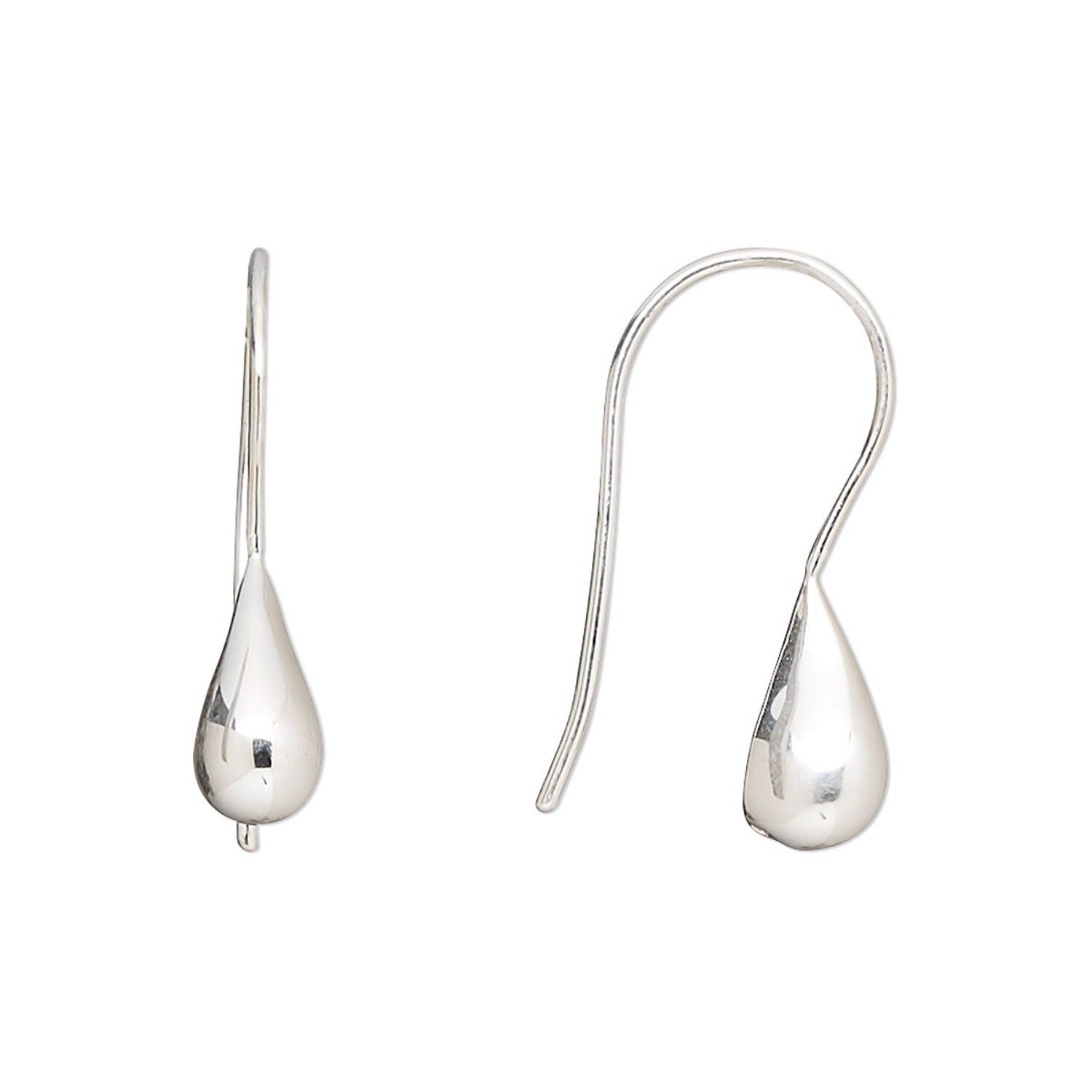 Ear wire fishhook 1pkg2 sterling silver, 23.5mm teardrop / 2 closed bottom holes, 20 gauge 1 pair