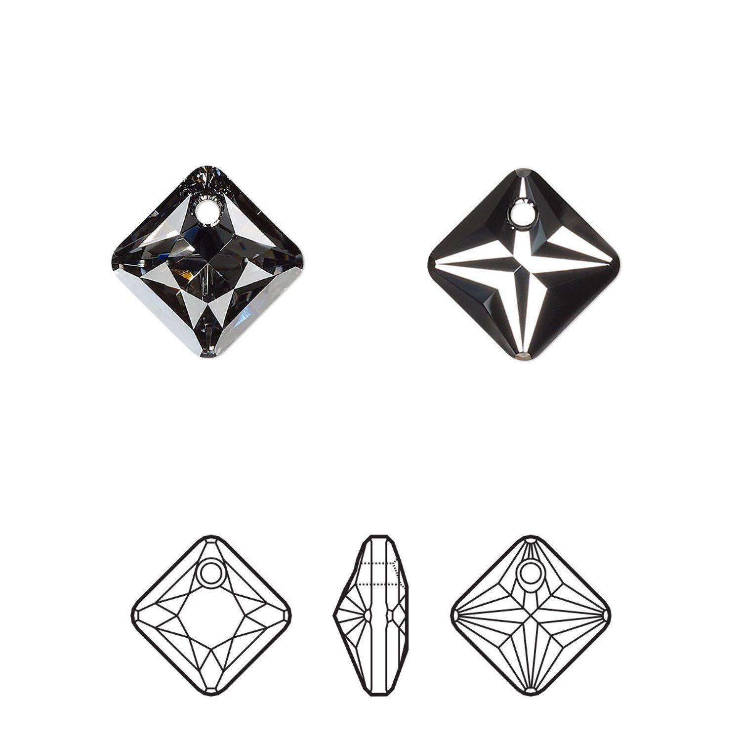 Drop 48pk crystal silver night, Swarovski® 11.5mm pendant princess cut 6431