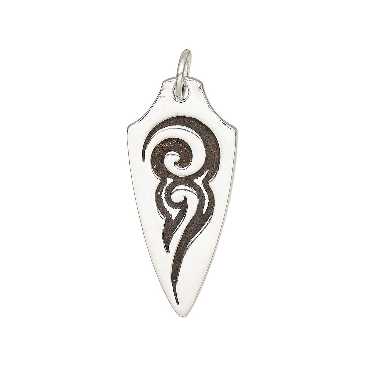 Charm, antiqued sterling silver, 24.5x11 single-sided arrowhead with tribal design and 5mm soldered jump ring. Sold individually.
