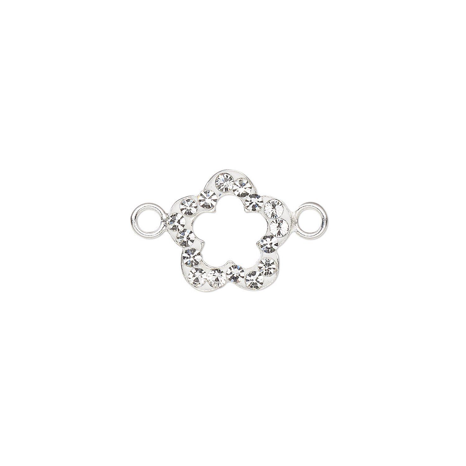 Link, crystal / epoxy / sterling silver, clear and white, 10mm single-sided flower. Sold individually.