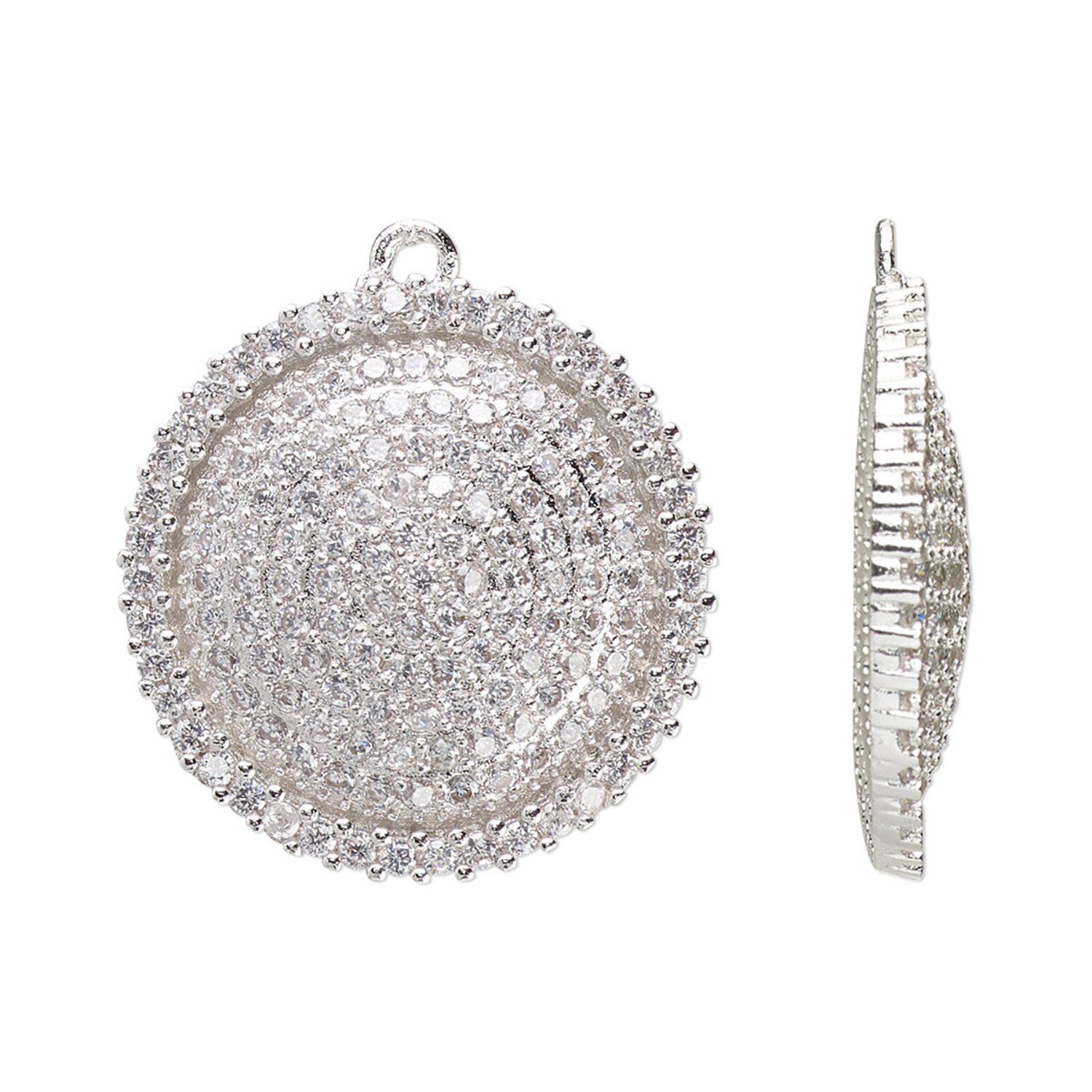 Drop, cubic zirconia and silver-plated brass, clear, 24mm single-sided domed round. Sold individually.