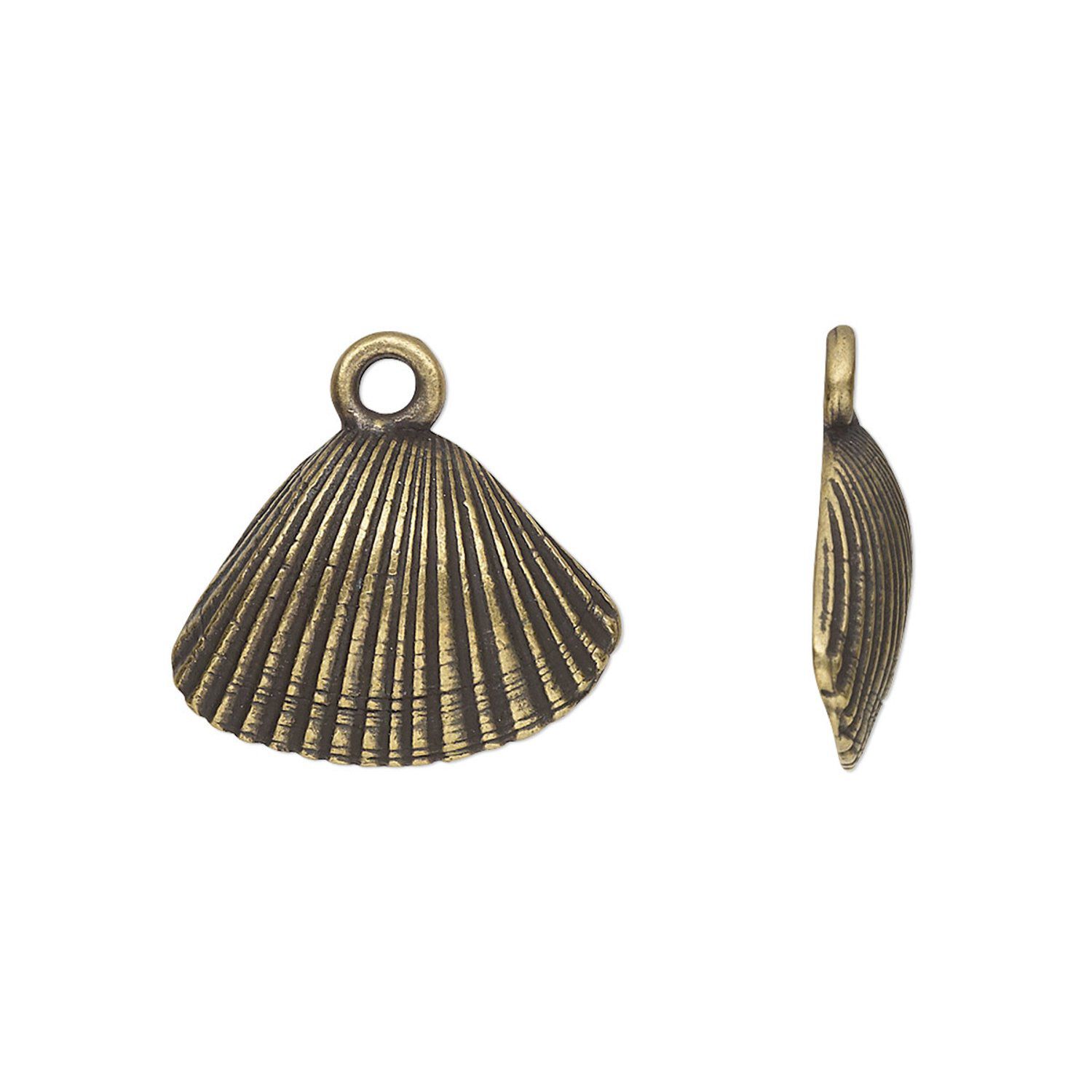 Antique brass-plated pewter charms by TierraCast® feature a cast design in the shape of a single-sided clam shell. Quality cast for exceptional detail and consistency, these lightweight charms are a cost-effective alternative to precious metal. All original designs, copyrighted by TierraCast®.