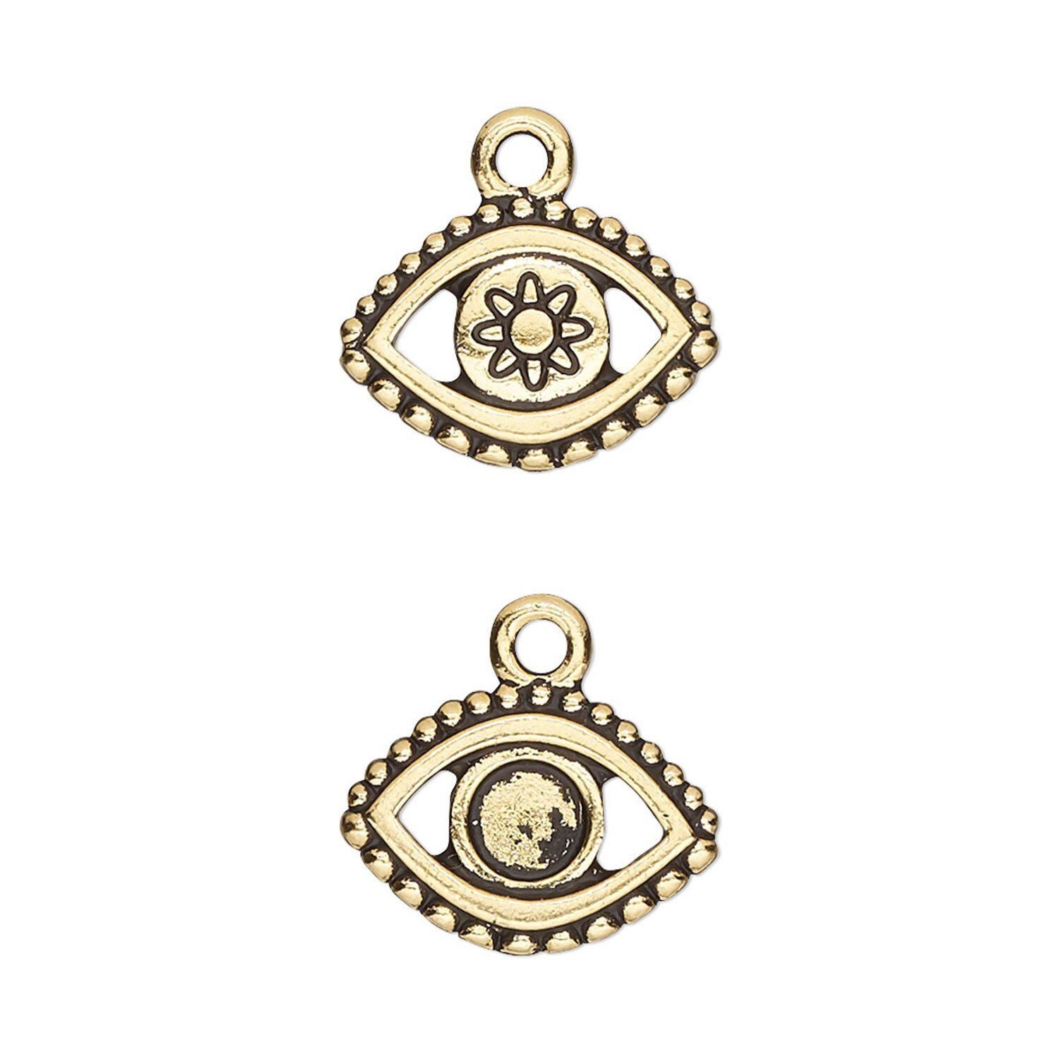 Charm, TierraCast®, "Happy Go Lucky" collection, antique gold-plated pewter (tin-based alloy), 16x11mm two-sided evil eye with SS20 flat back glue-in setting. Sold per pkg of 2.