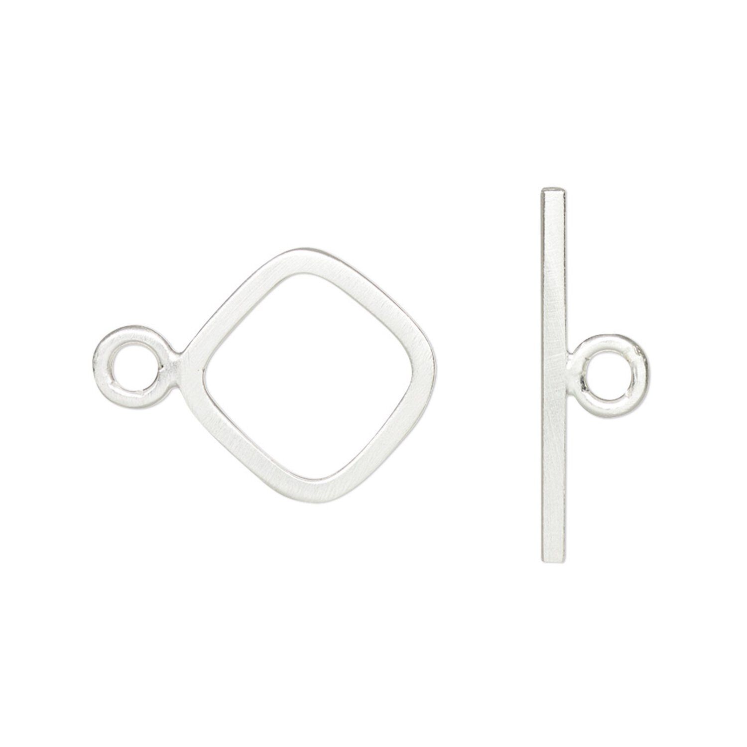 Clasp toggle 1pkg1 satin sterling silver, 15x15mm diamond, 1-strand