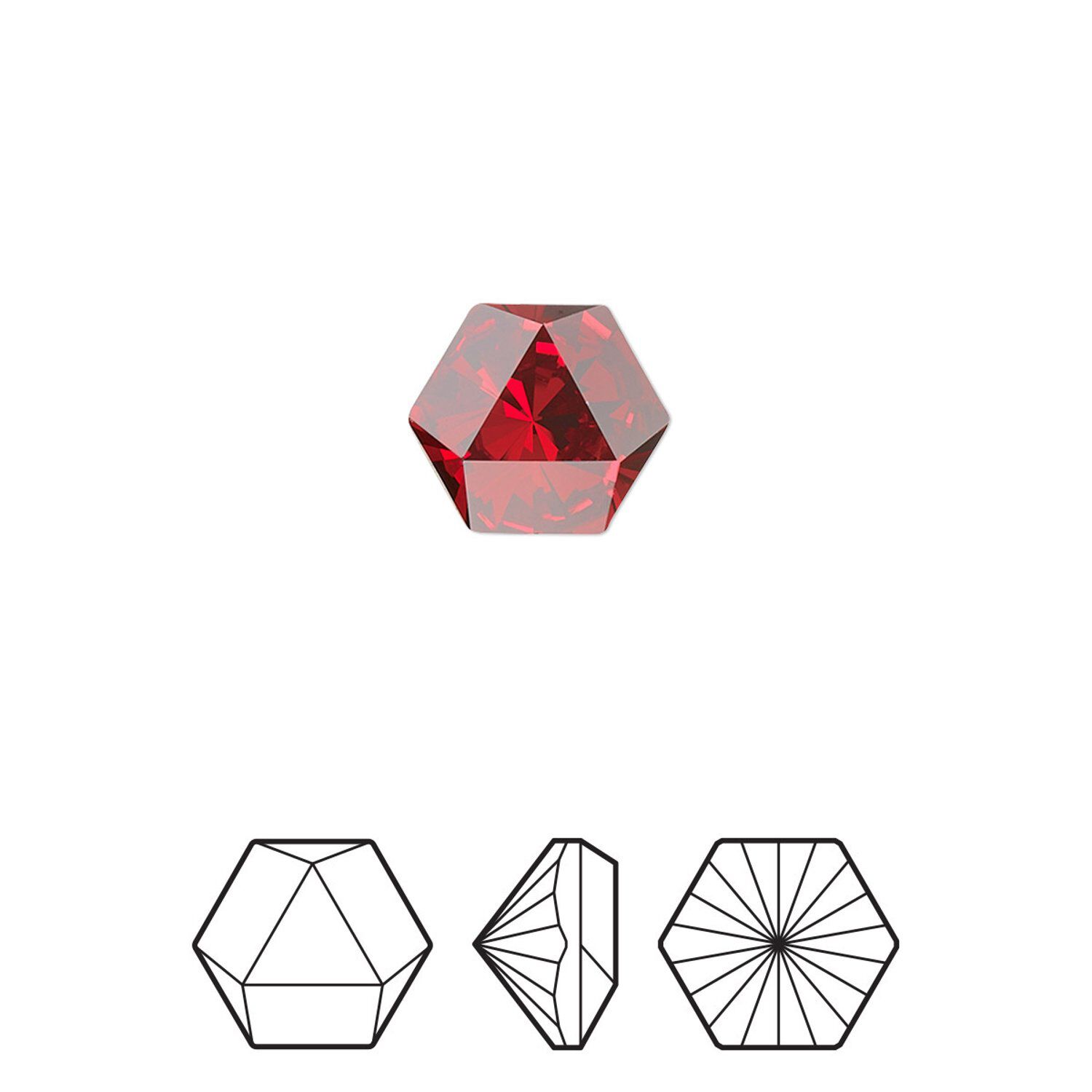 Fancy stone 2pk scarlet foil back, Crystal Passions® 10.8x9.4mm prismatic hexagon 4699