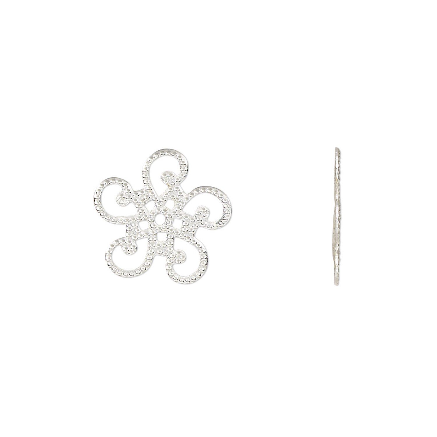 Component, silver-finished steel, 14x13mm single-sided flower. Sold per pkg of 20.