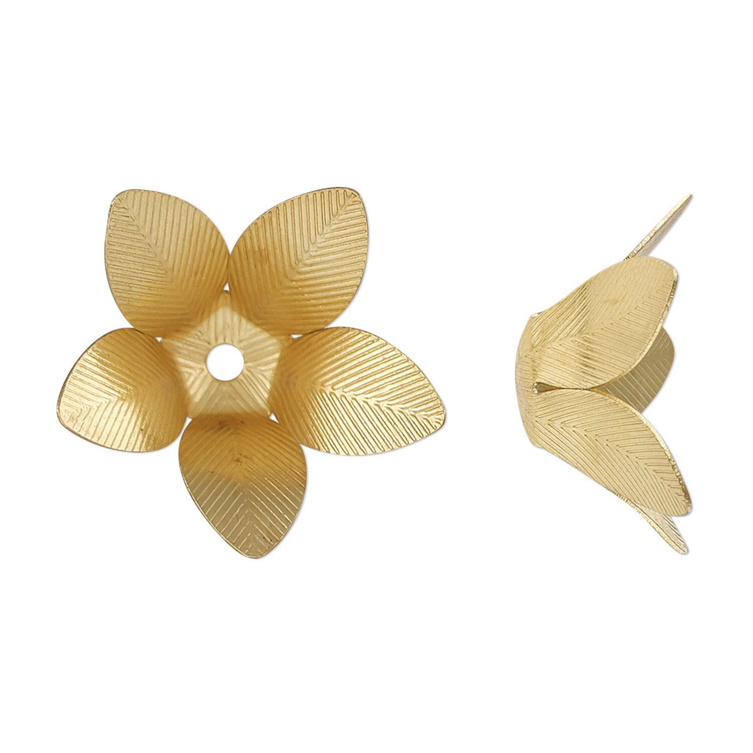 Bead cap, gold-finished steel, 22x9mm flower, fits 10-12mm round bead. Sold per pkg of 20.