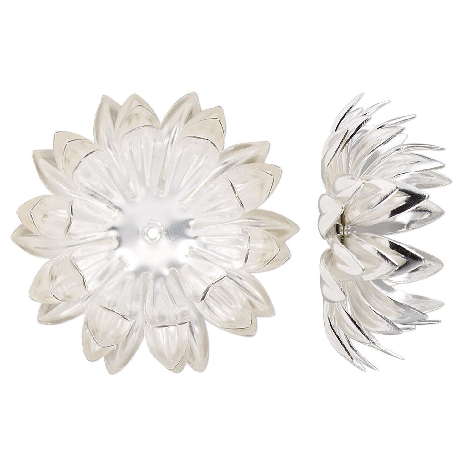 Component, silver-finished copper, 29x28.5mm 3D lotus flower. Sold individually.