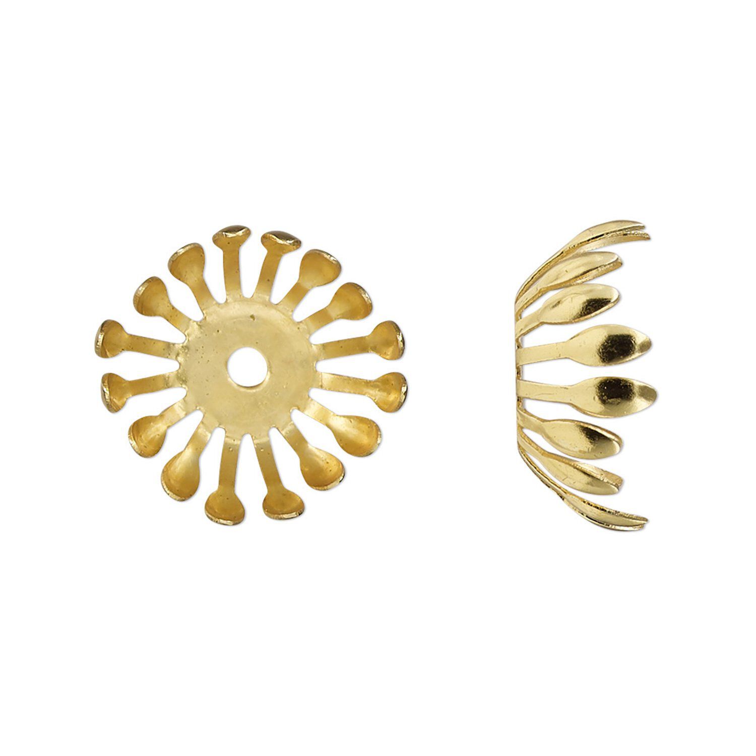Bead cap, gold-finished steel, 17x7.5mm burst, fits 14-16mm round bead. Sold per pkg of 20.