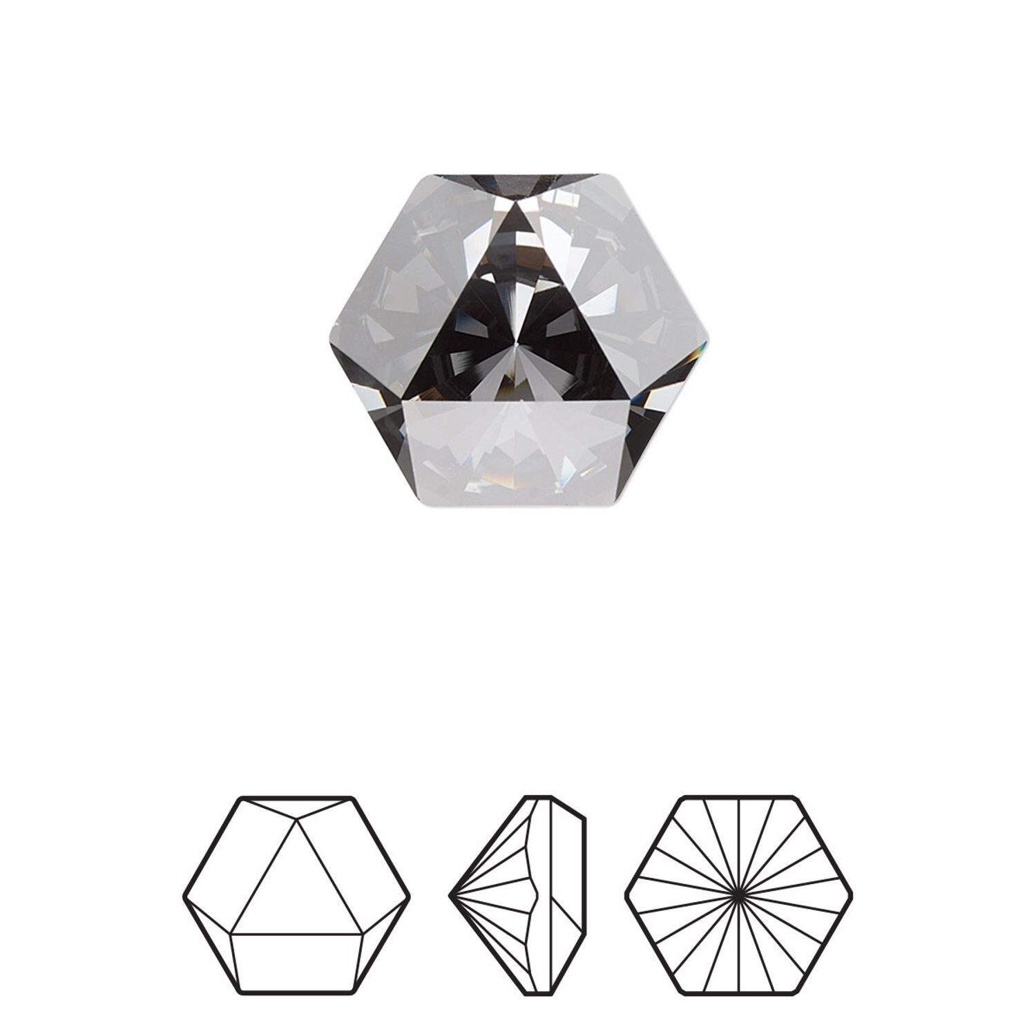 Fancy stone 1pk crystal silver night foil back, Crystal Passions® 16x14mm prismatic hexagon 4699