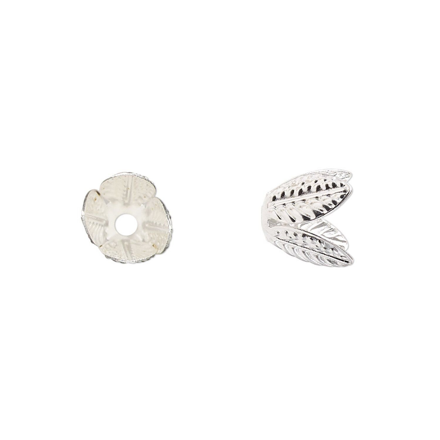 Bead cap, silver-finished steel, 9mm leaves, fits 6-8mm round bead. Sold per pkg of 20.