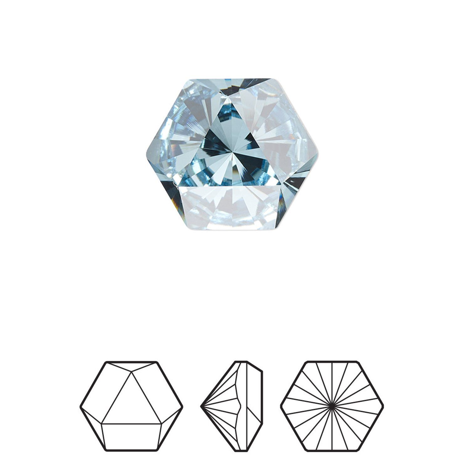 Fancy stone 1pk aquamarine foil back, Crystal Passions® 16x14mm prismatic hexagon 4699