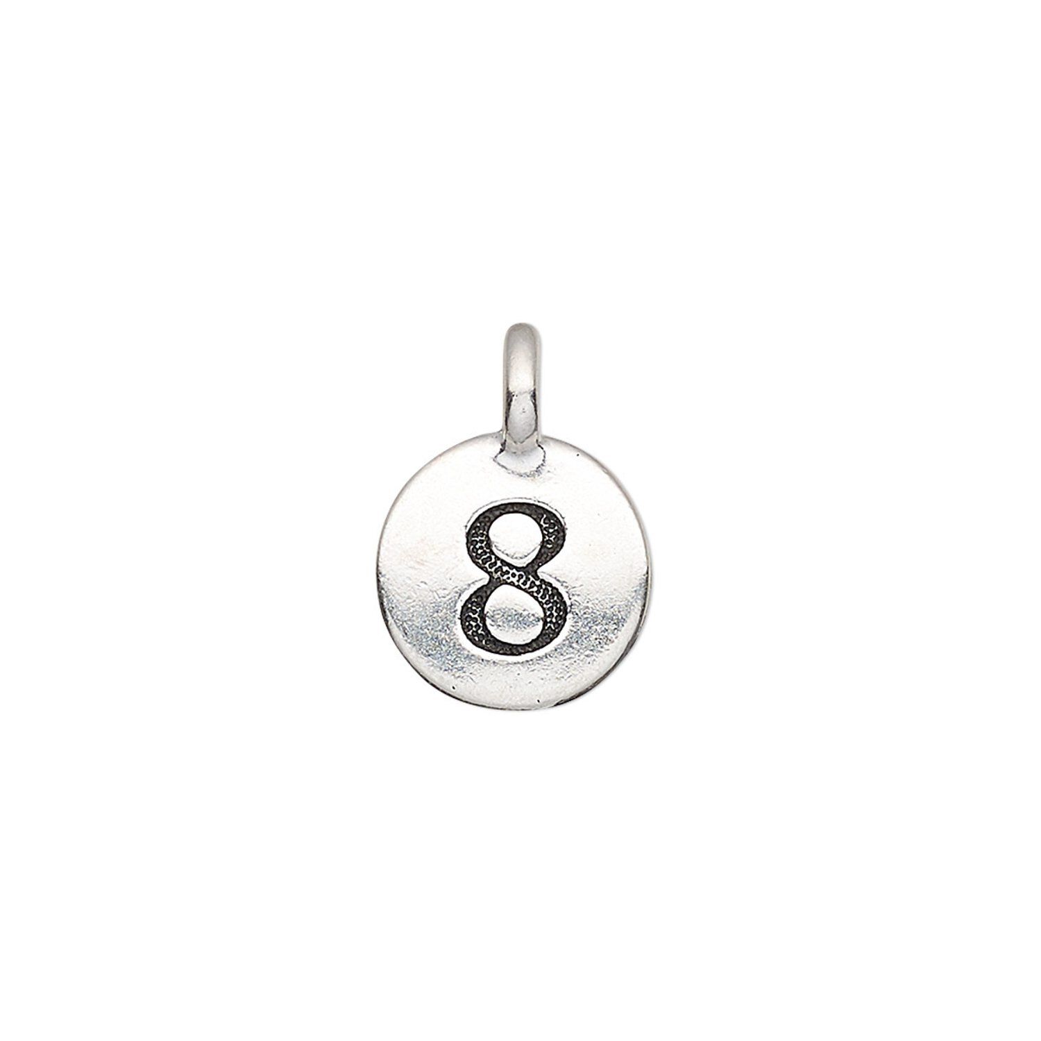 Drop, TierraCast®, antique silver-plated pewter (tin-based alloy), 11.5mm single-sided round with textured number "8." Sold per pkg of 2.