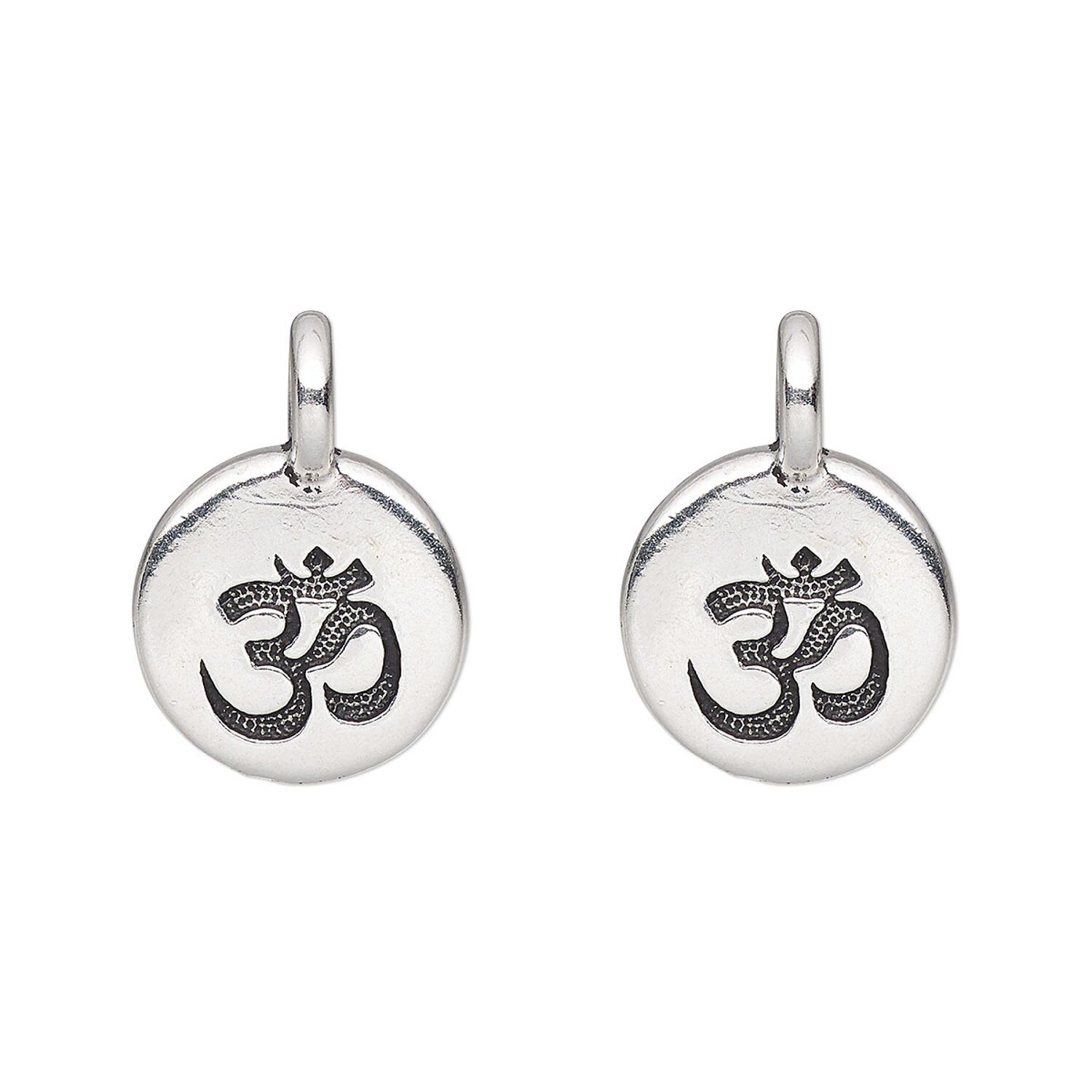 Give designs a touch of serenity with this antique silver-plated drop depicting the sacred Om symbol. Also spelled Aum, this symbol represents the cosmic beginning of creation in Hinduism and is a word for meditation and focus. The 11.5mm single-sided round is petite enough for charm bracelets, earrings and more without adding hefty weight.