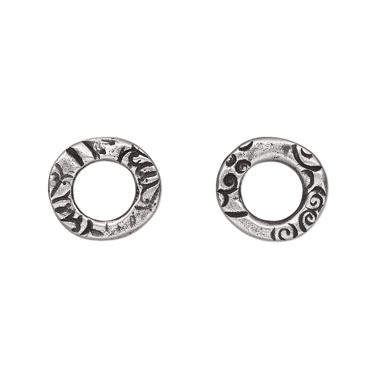 Component, TierraCast®, "Vida Mas Dulce" collection, antiqued pewter (tin-based alloy), 13x12mm uneven open round with flora design, 7mm inside diameter. Sold per pkg of 20.