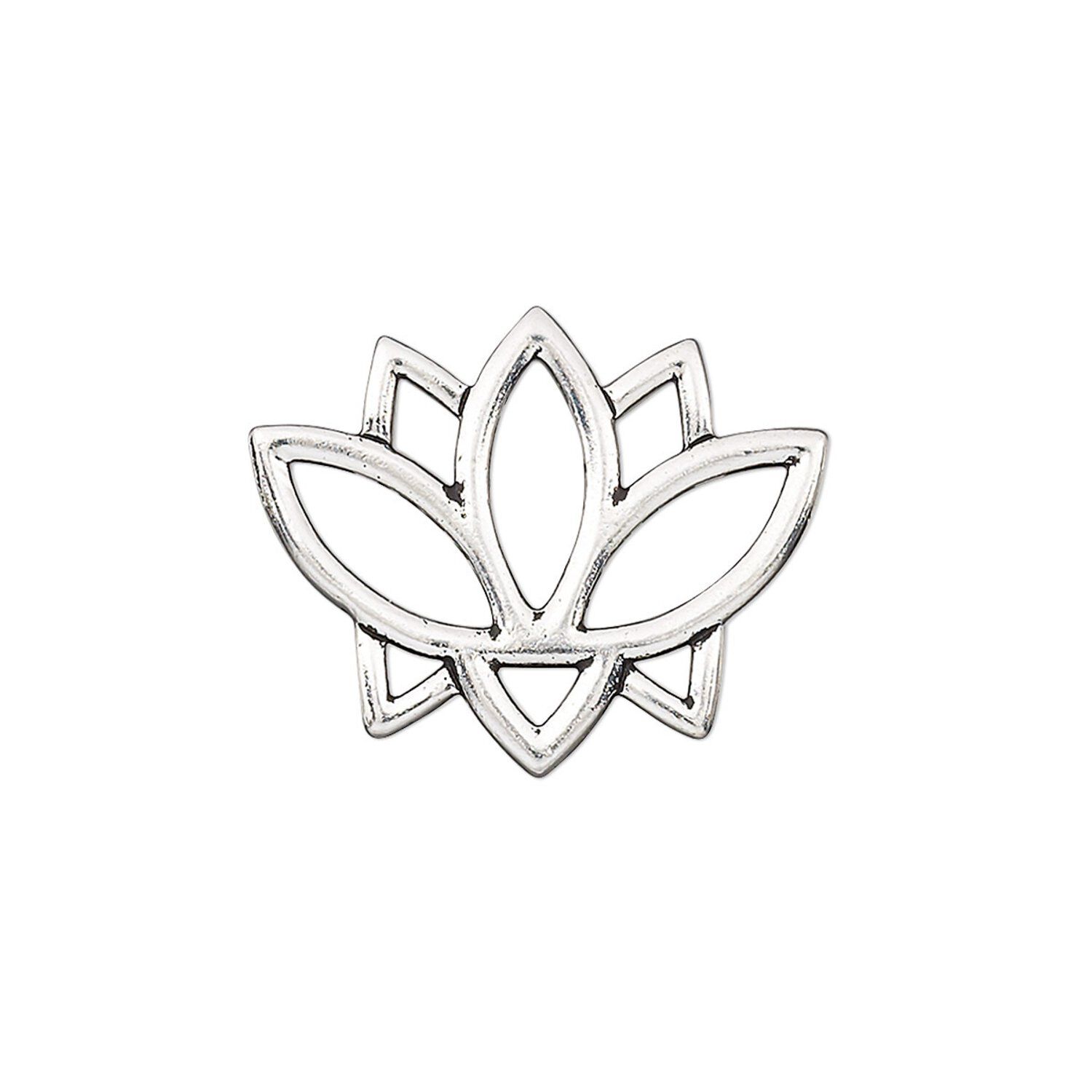 Link, TierraCast®, "Make a Statement" collection, antique silver-plated pewter, 23x19mm double-sided open lotus with renewal theme. Sold per pkg of 2.