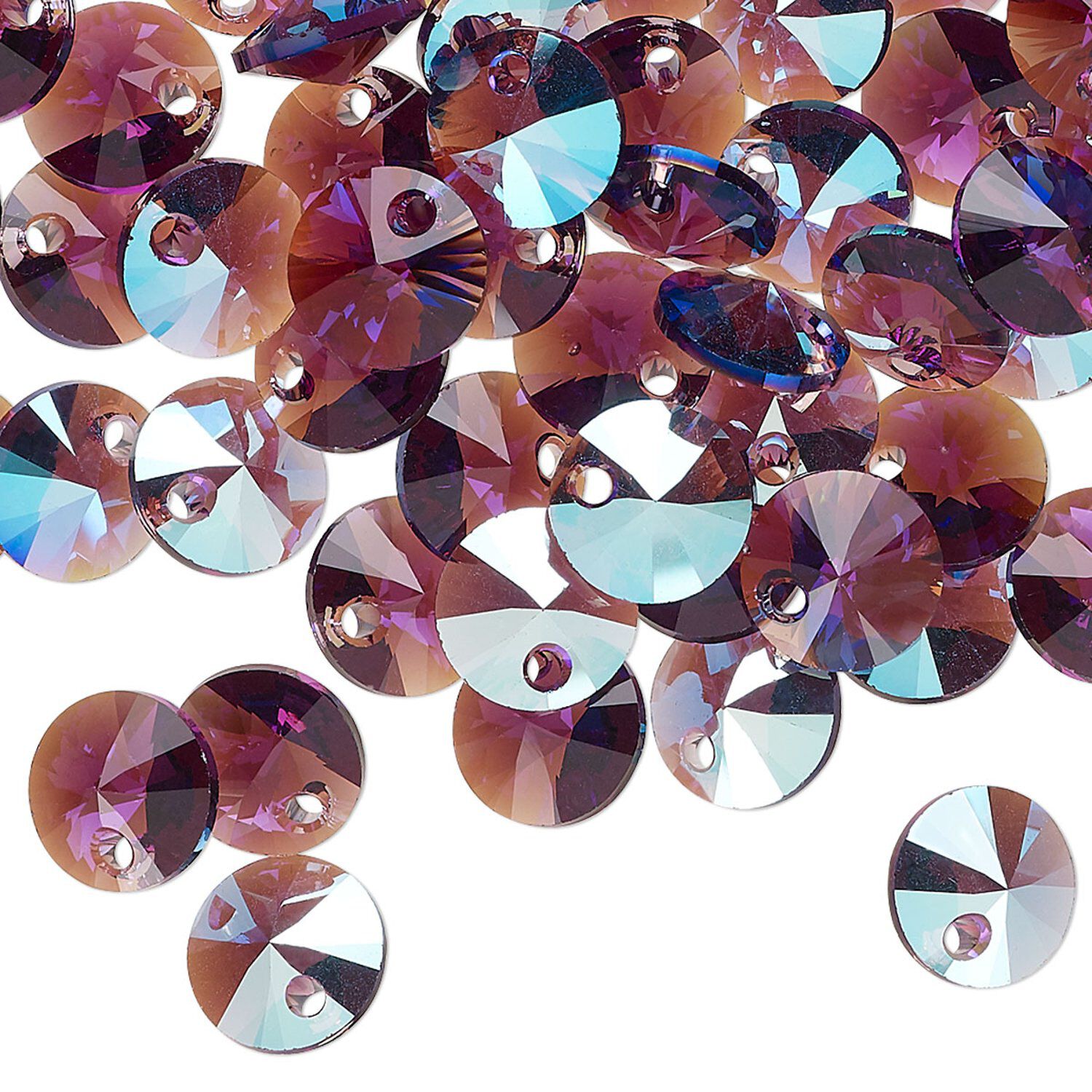 Drop 144pk amethyst shimmer, Swarovski® 8mm pendant mini disk 6428