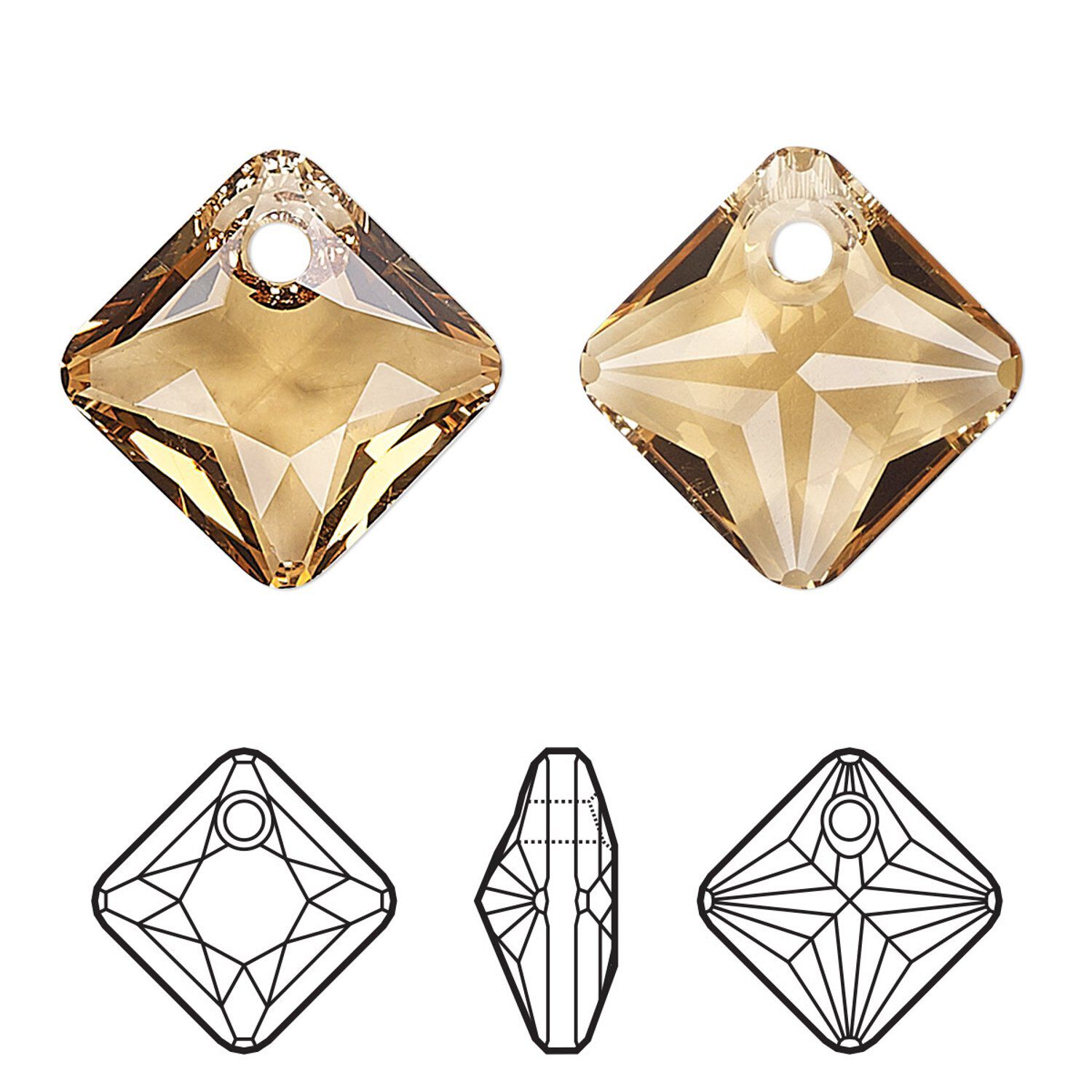 Drop 4pk light Colorado topaz, Crystal Passions® 9mm pendant princess cut 6431