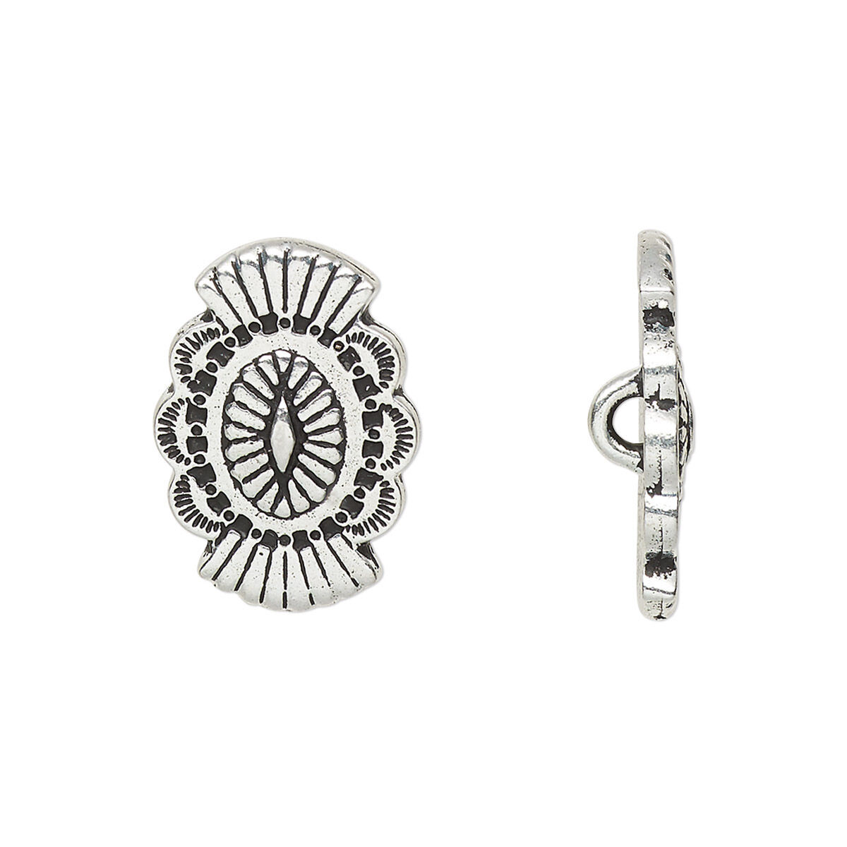 Button, TierraCast®, "Western Winds" collection, antique silver-plated pewter (tin-based alloy), 20x14mm with concho design and loop. Sold per pkg of 20.